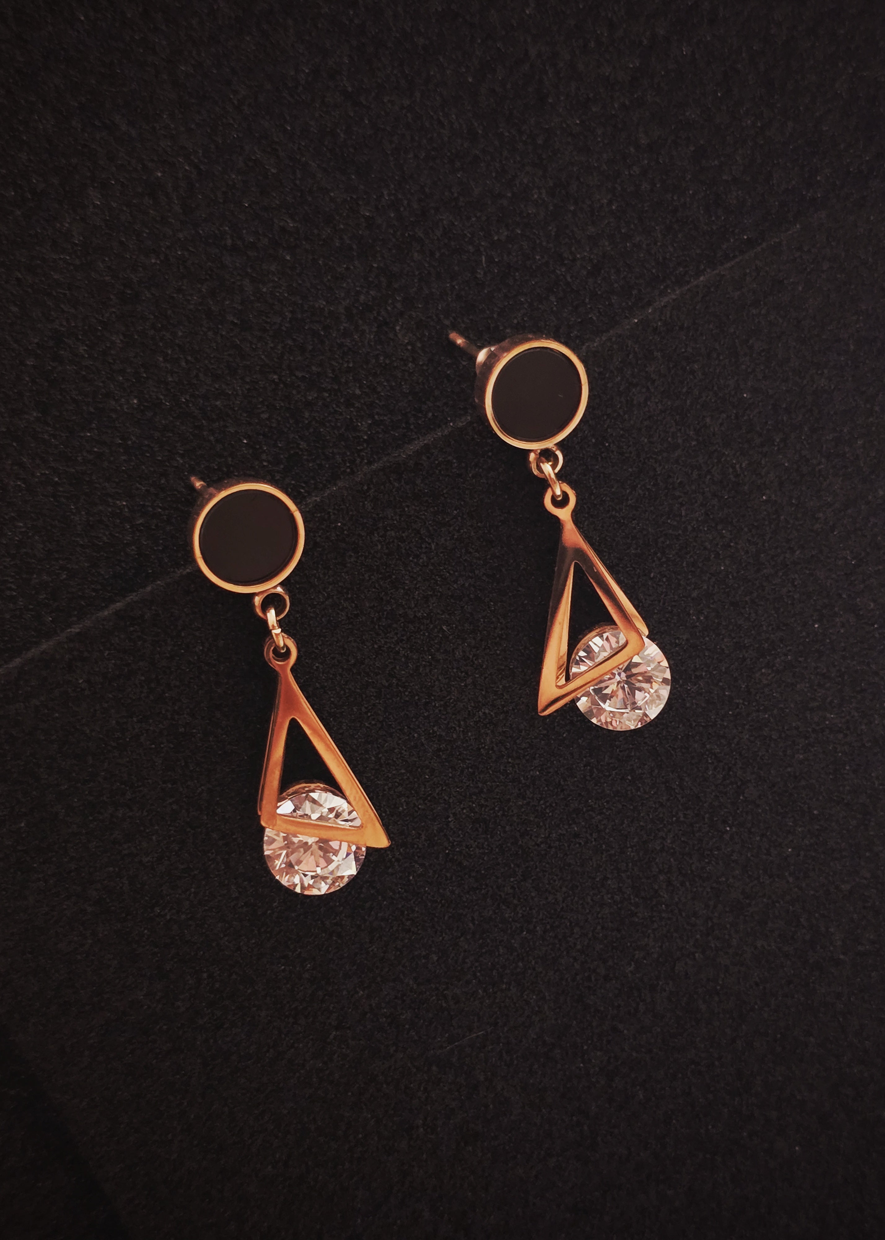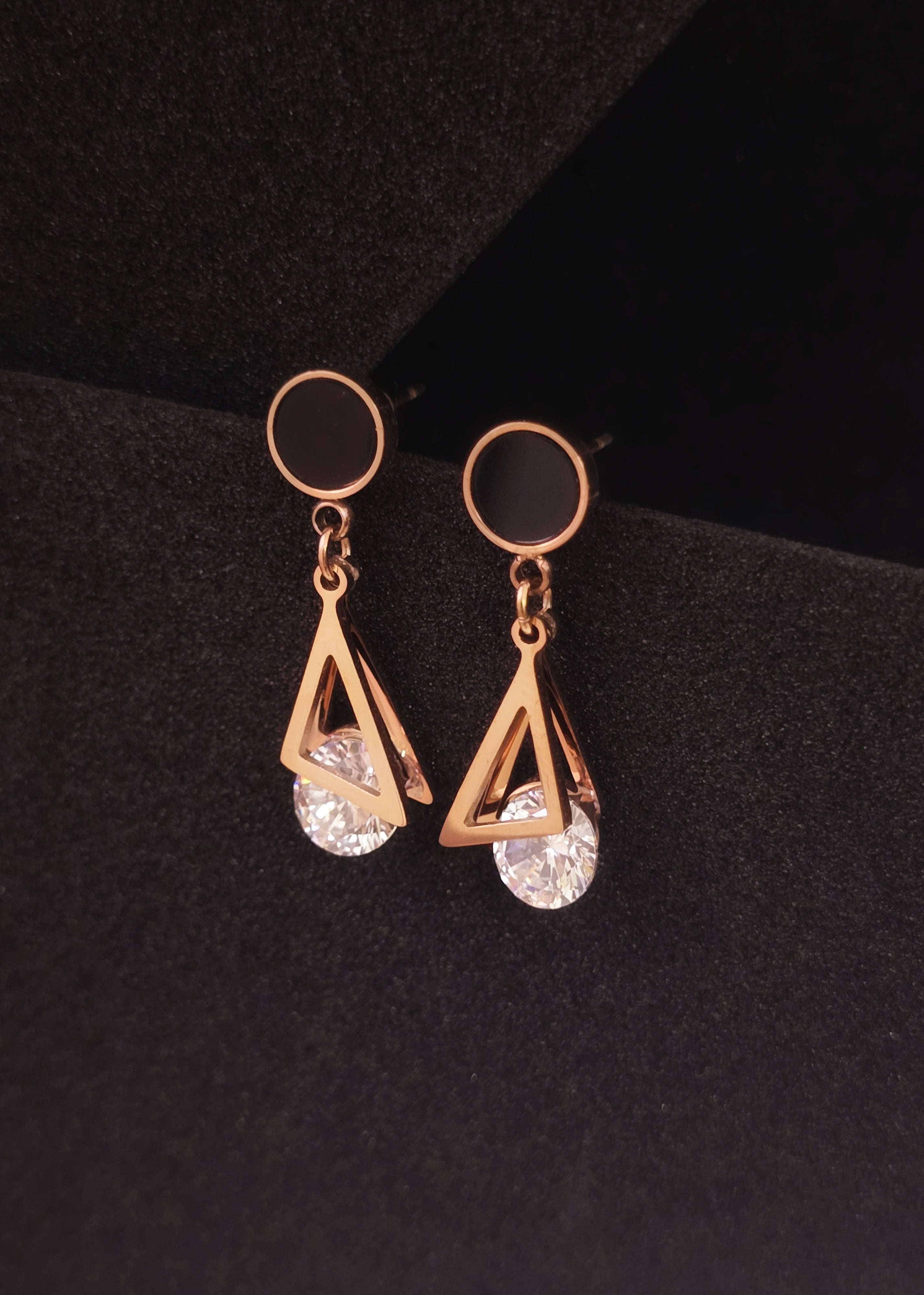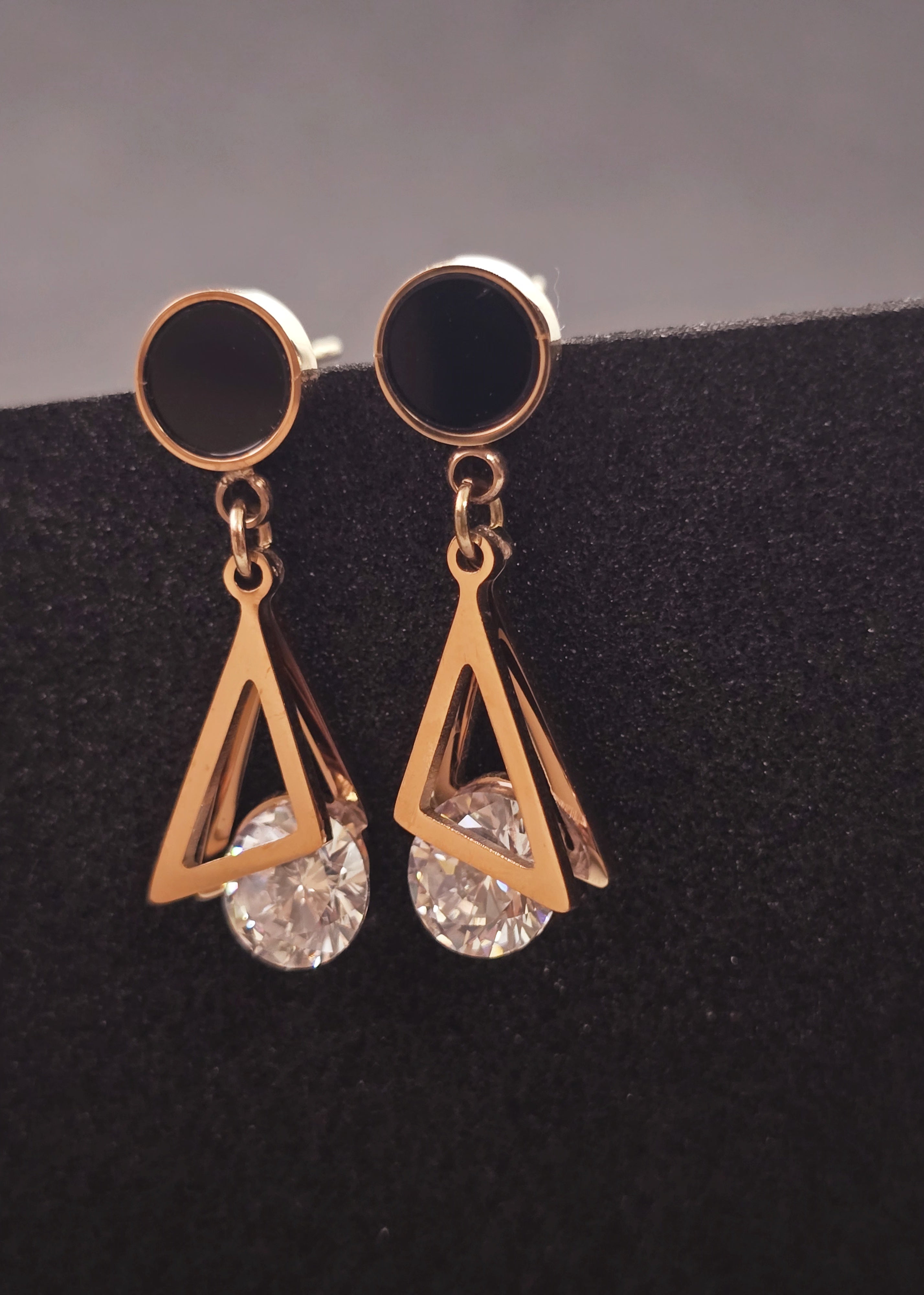 Chic, edgy, and modern — the Adorniv Black Prism Drop Earrings blend minimal elegance with artistic flair. The earrings feature a glossy black round stud connected to a geometric triangular drop, crowned with a brilliant-cut stone for just the right touch of sparkle. These earrings make a bold yet refined statement that elevates any look.