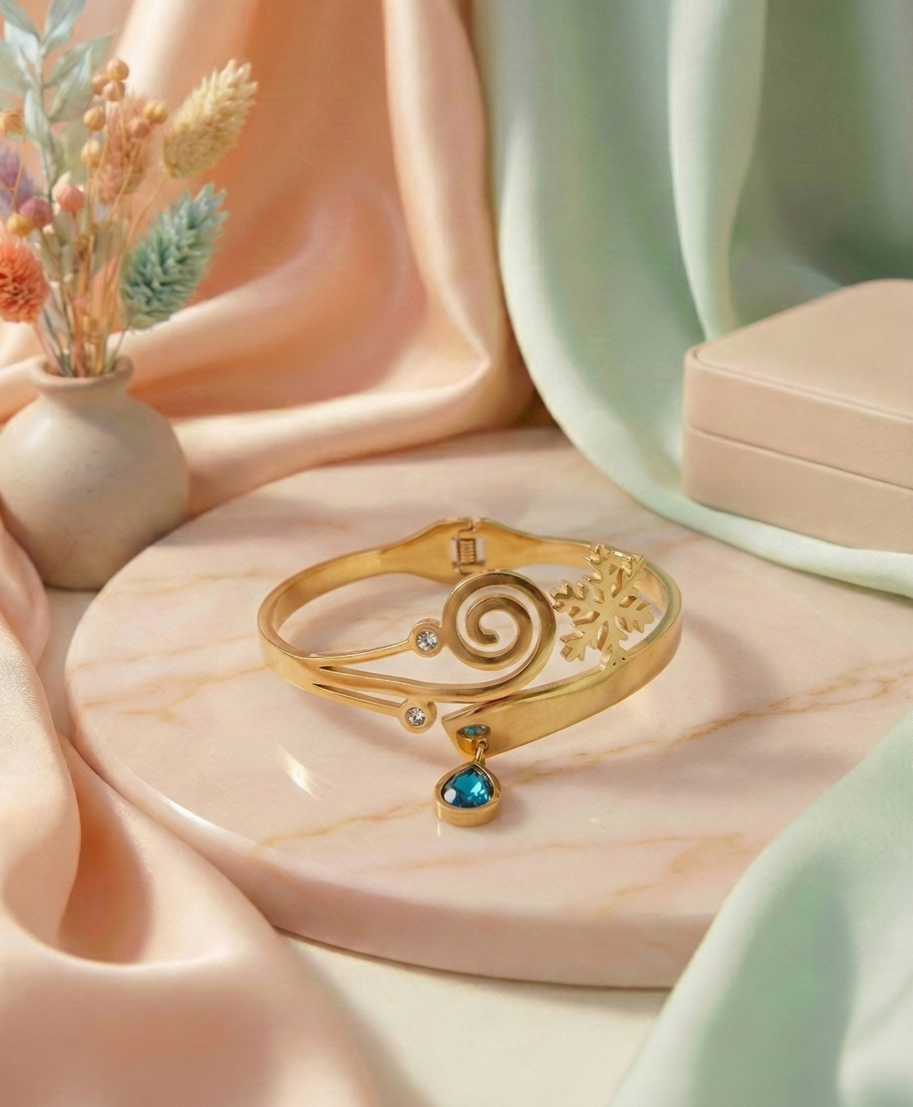 - Great for layering with slim gold bangles or worn solo as a standout piece