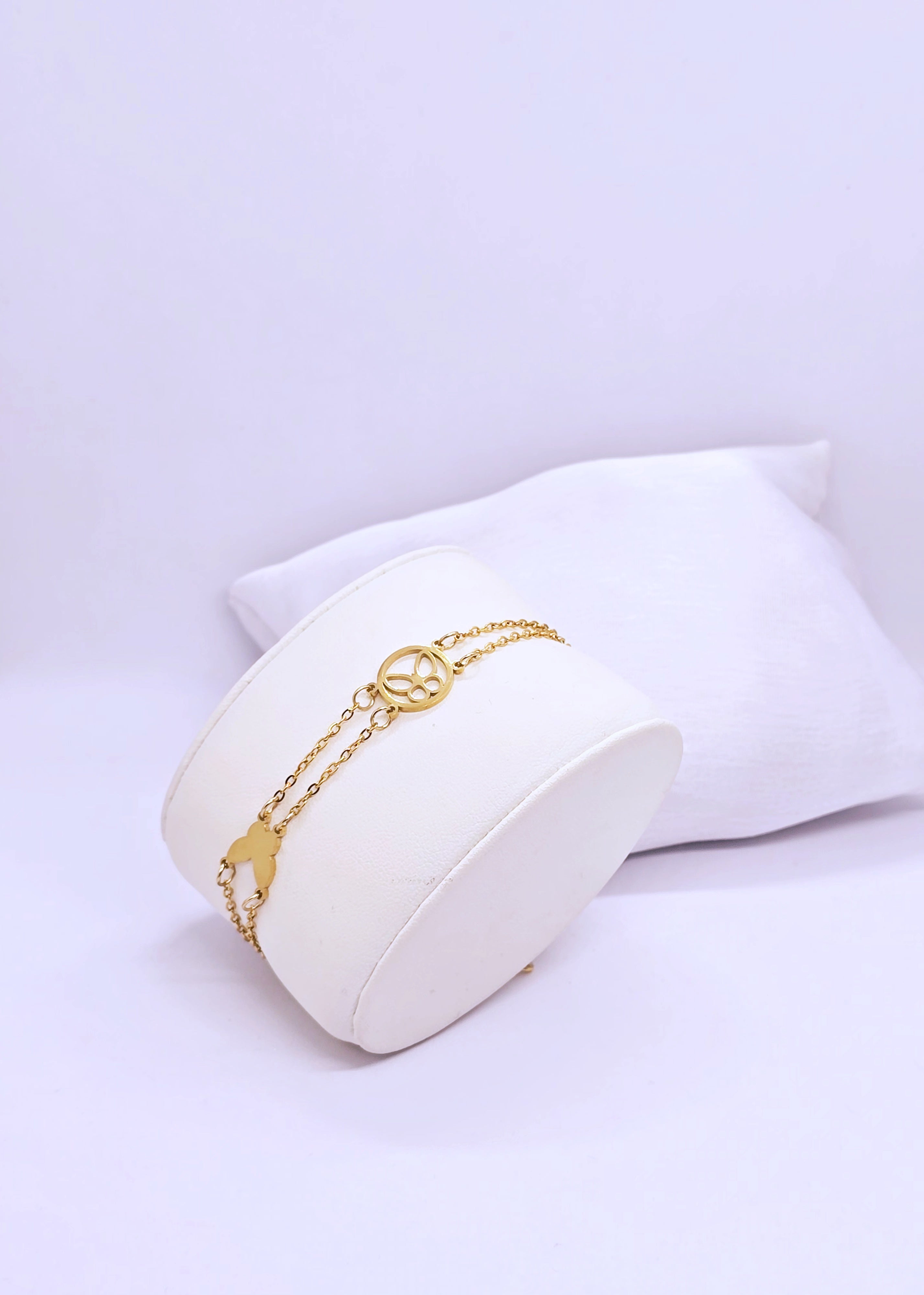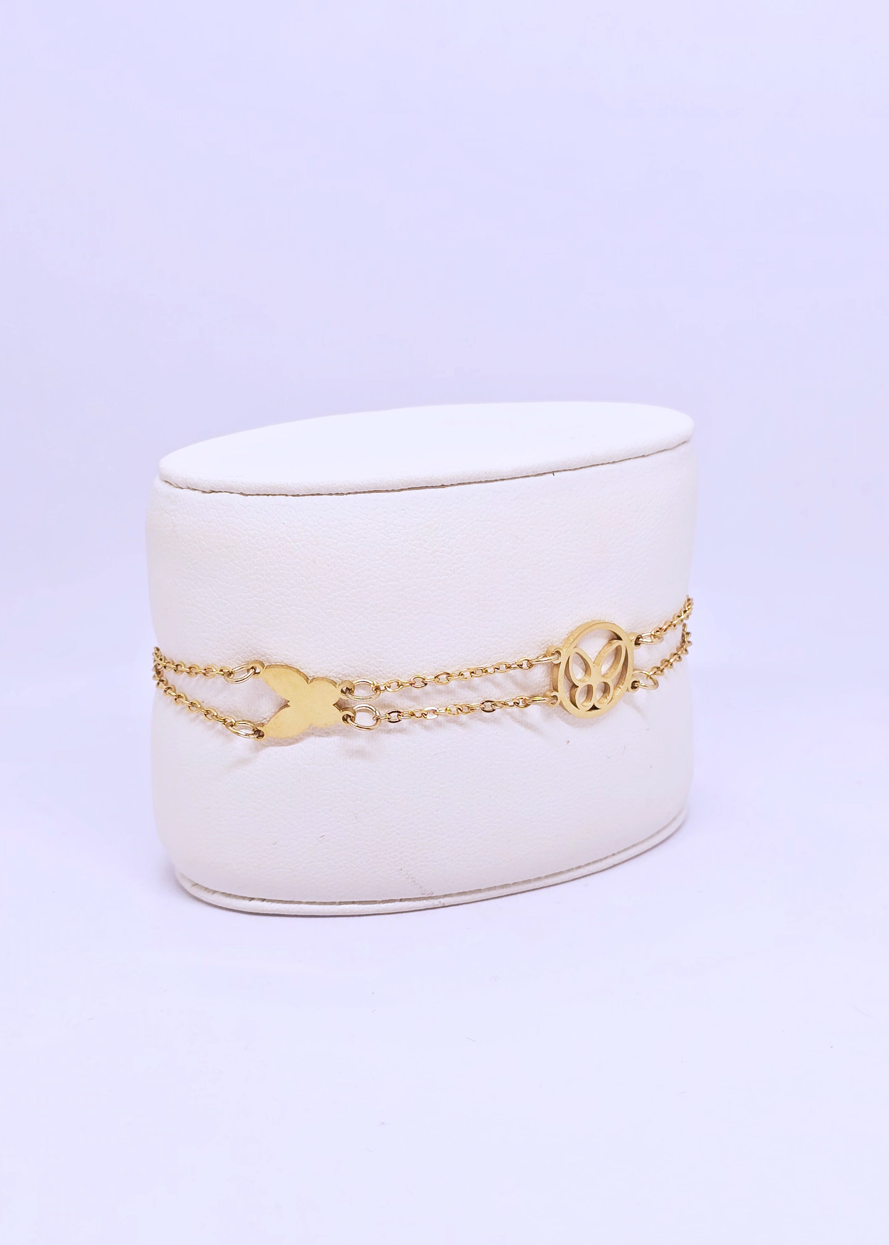 A delicate expression of elegance and femininity, this Adorniv bracelet showcases a refined gold-tone double-chain design with a central openwork butterfly charm encased in a circle. A solid butterfly clasp accent on top adds a whimsical finish, making this piece a subtle yet beautiful statement for daily elegance.