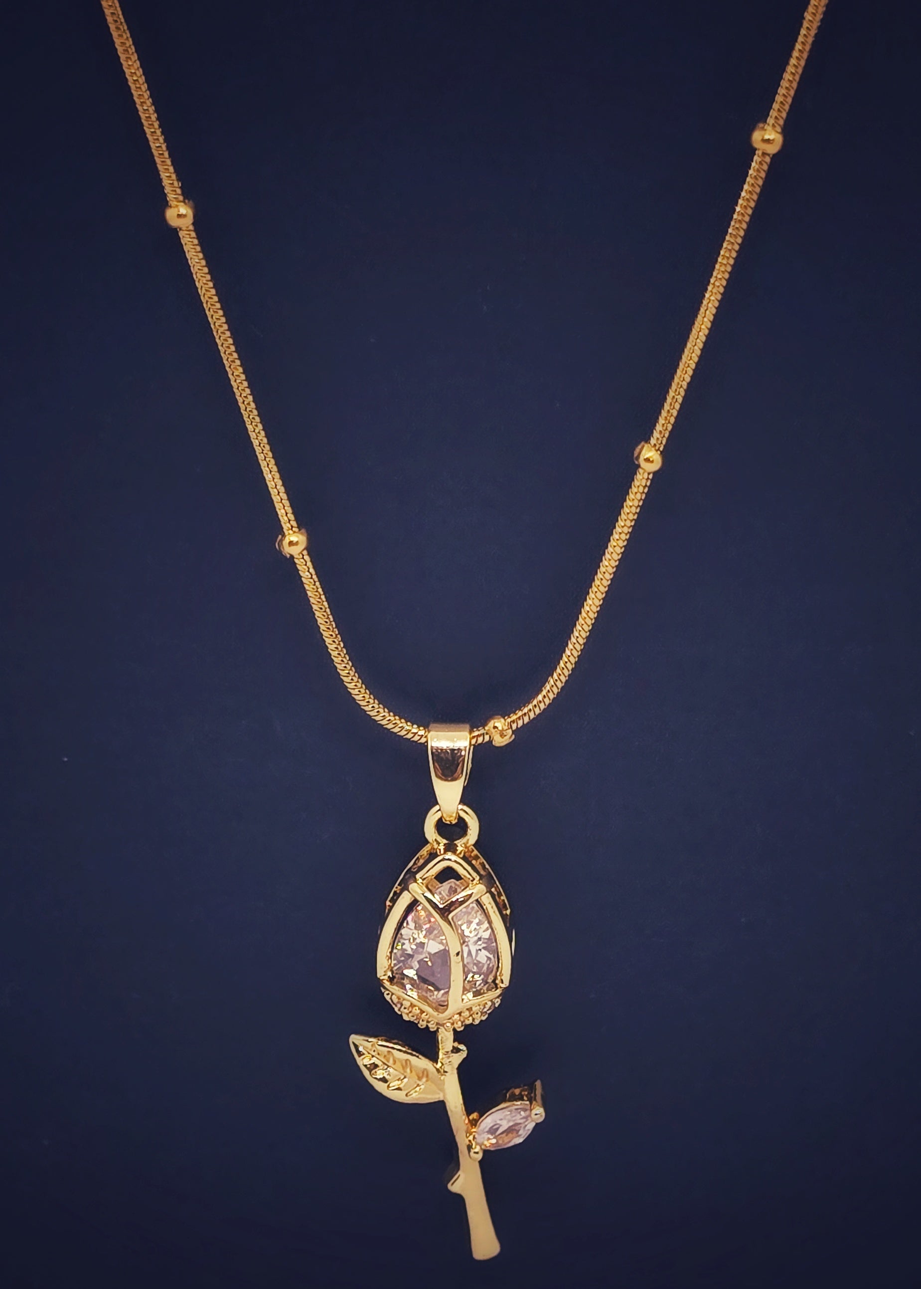 • Tulip bud-shaped pendant with crystal embellishments