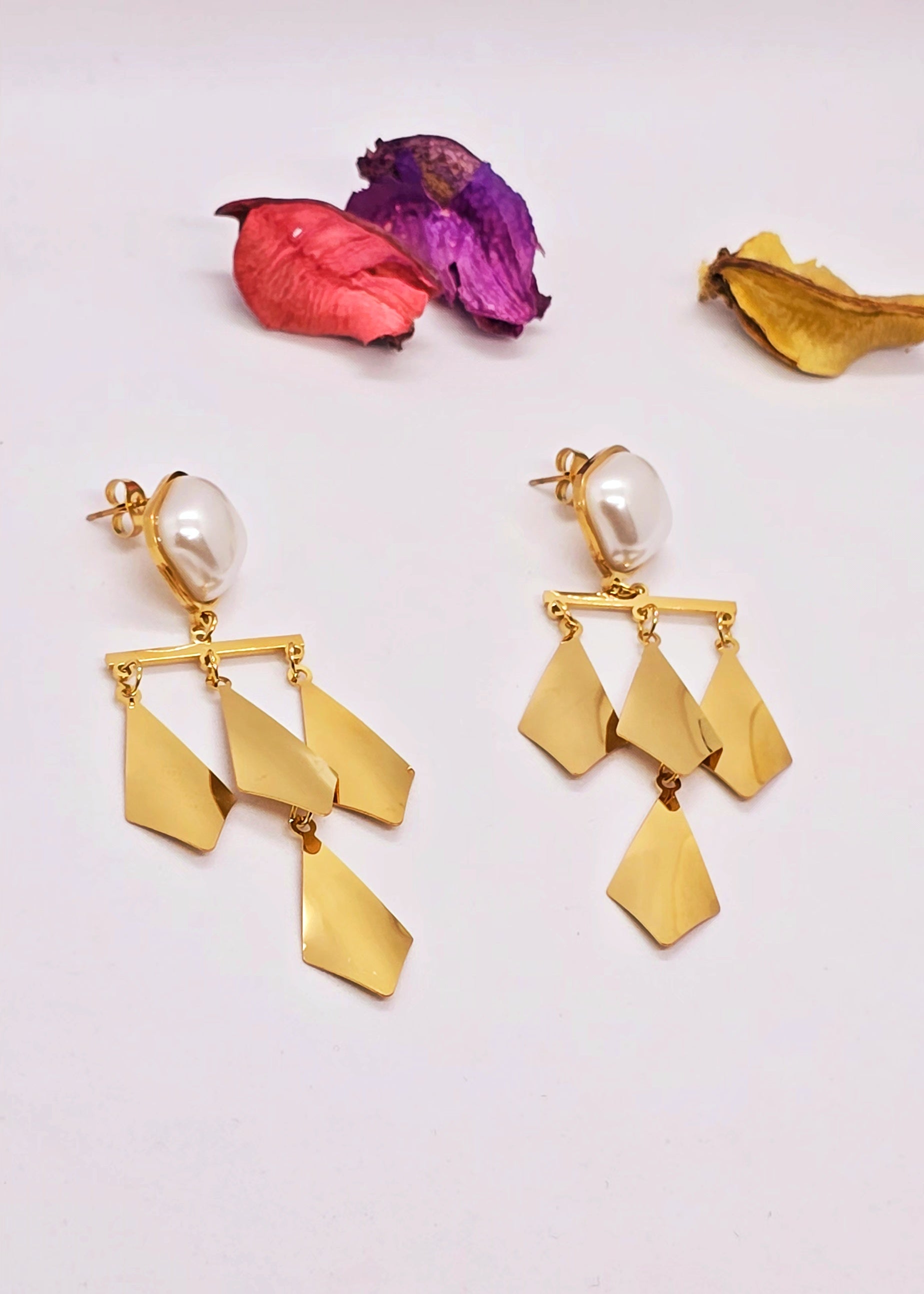 Make a bold statement with the Adorniv Dazzle Rhombus Statement Earrings. Featuring a luxurious pearl stud paired with cascading golden rhombus-shaped charms, these earrings bring a perfect blend of elegance and contemporary style. With their waterproof and sweatproof design, they promise long-lasting brilliance, making them the perfect companion for any occasion — rain or shine.