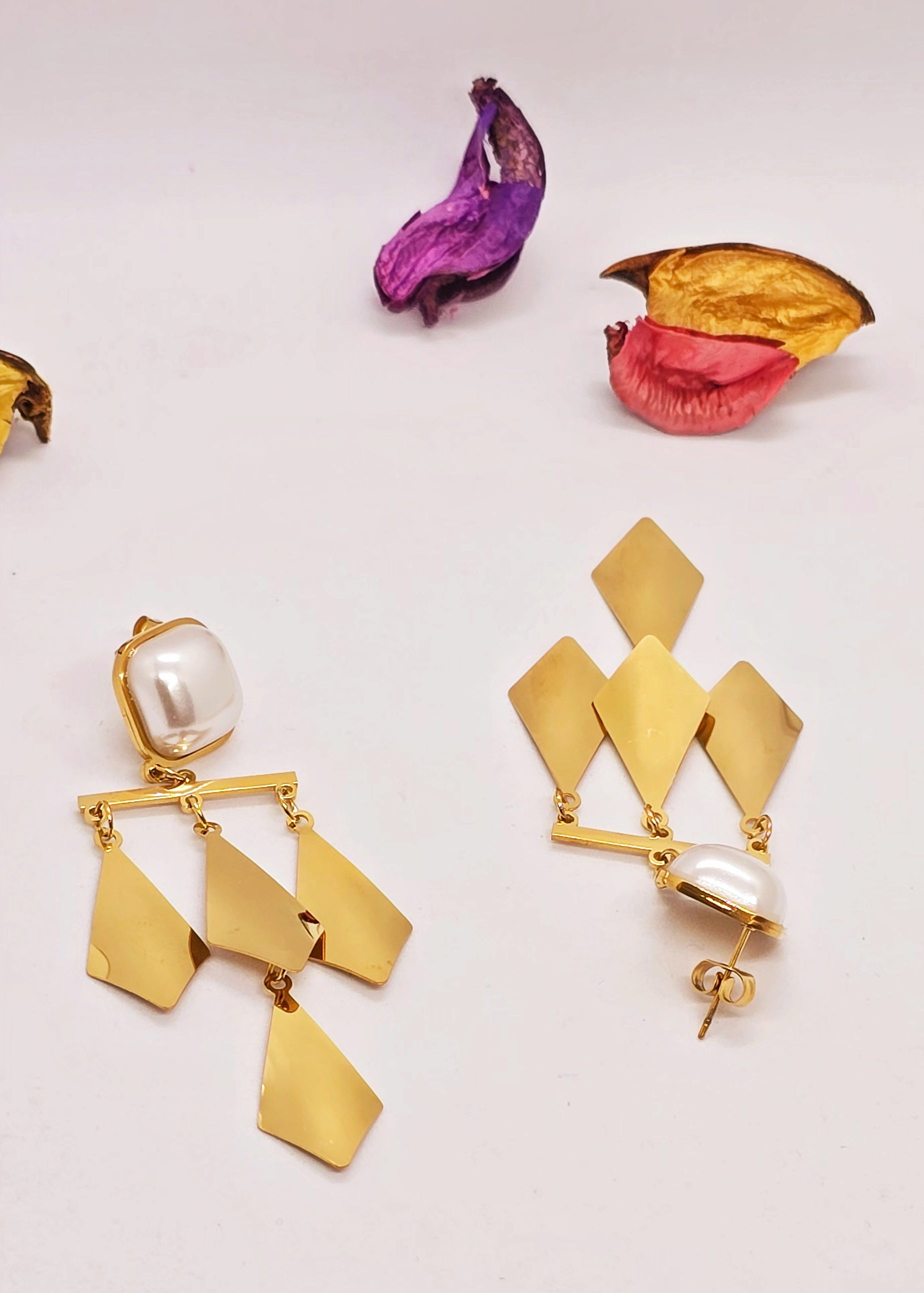 • Chic Modern Design: Rhombus-shaped charms for a bold, geometric appeal.