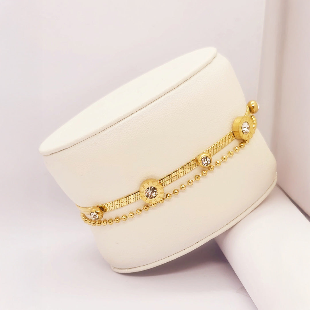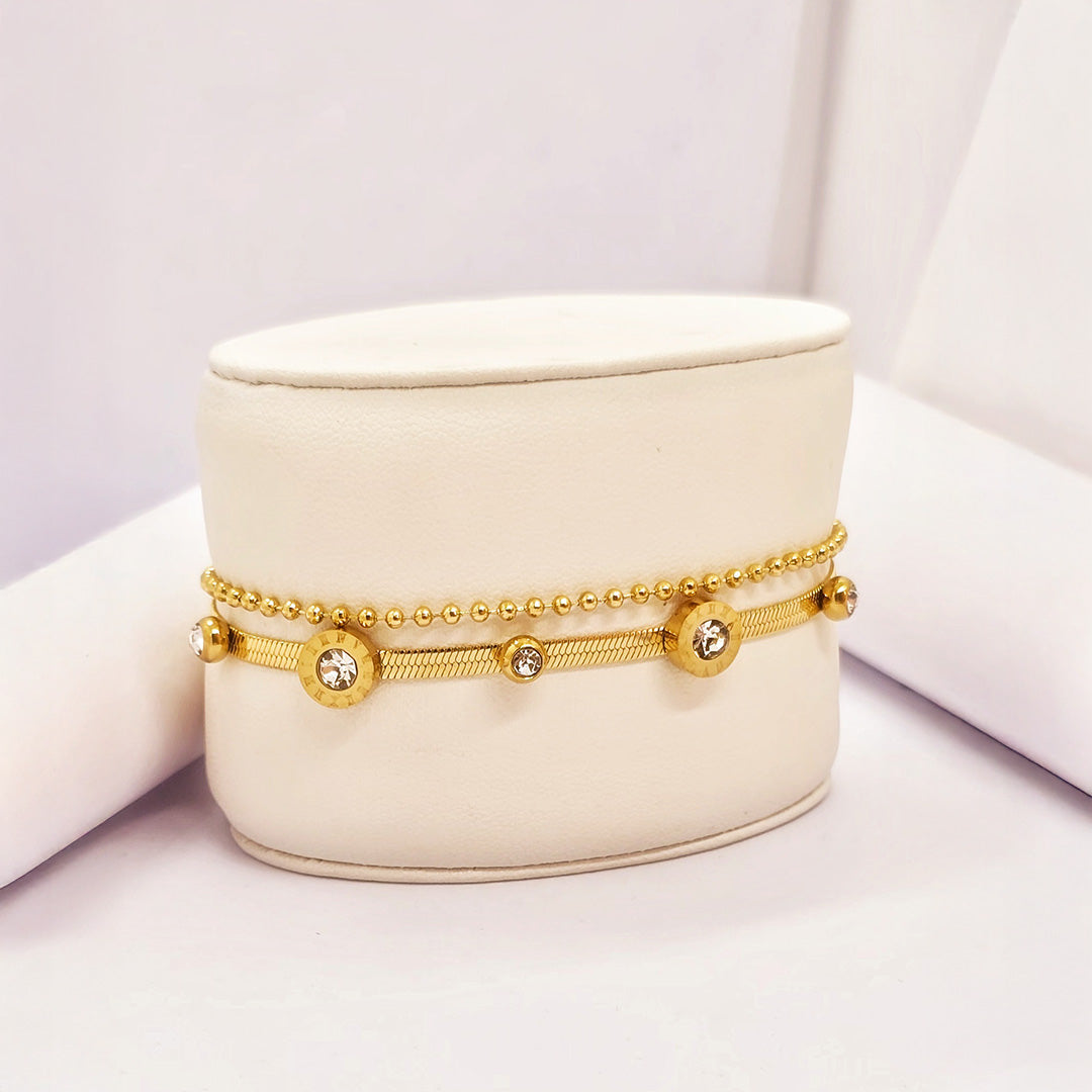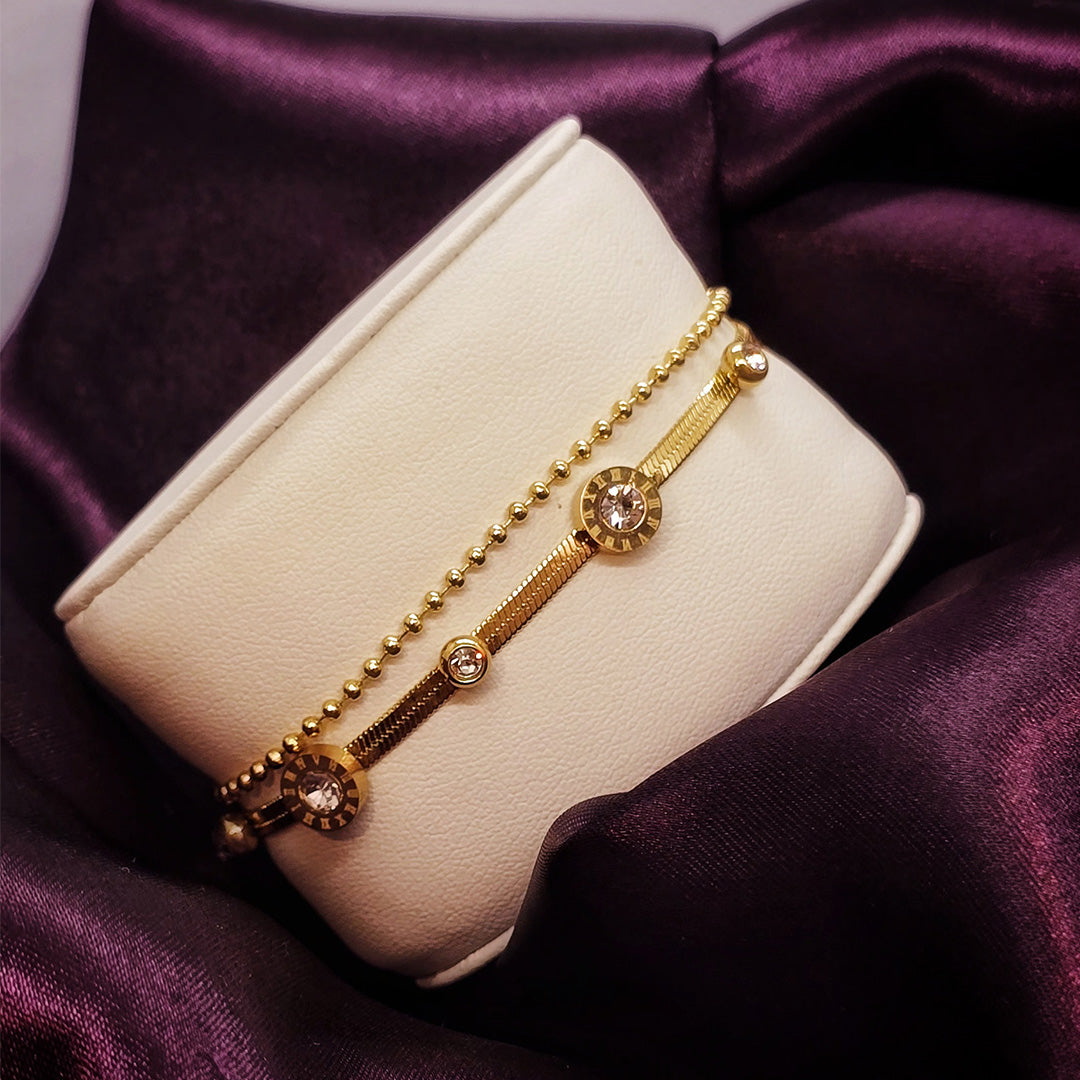 Elevate your accessory game with the Adorniv Double-Layer Gold Bracelet, a harmonious blend of elegance and durability. This bracelet features two intricately designed gold-plated chains, offering a layered look that exudes sophistication. Whether you're dressing up for a special occasion or adding a touch of luxury to your everyday ensemble, this piece is your perfect companion.