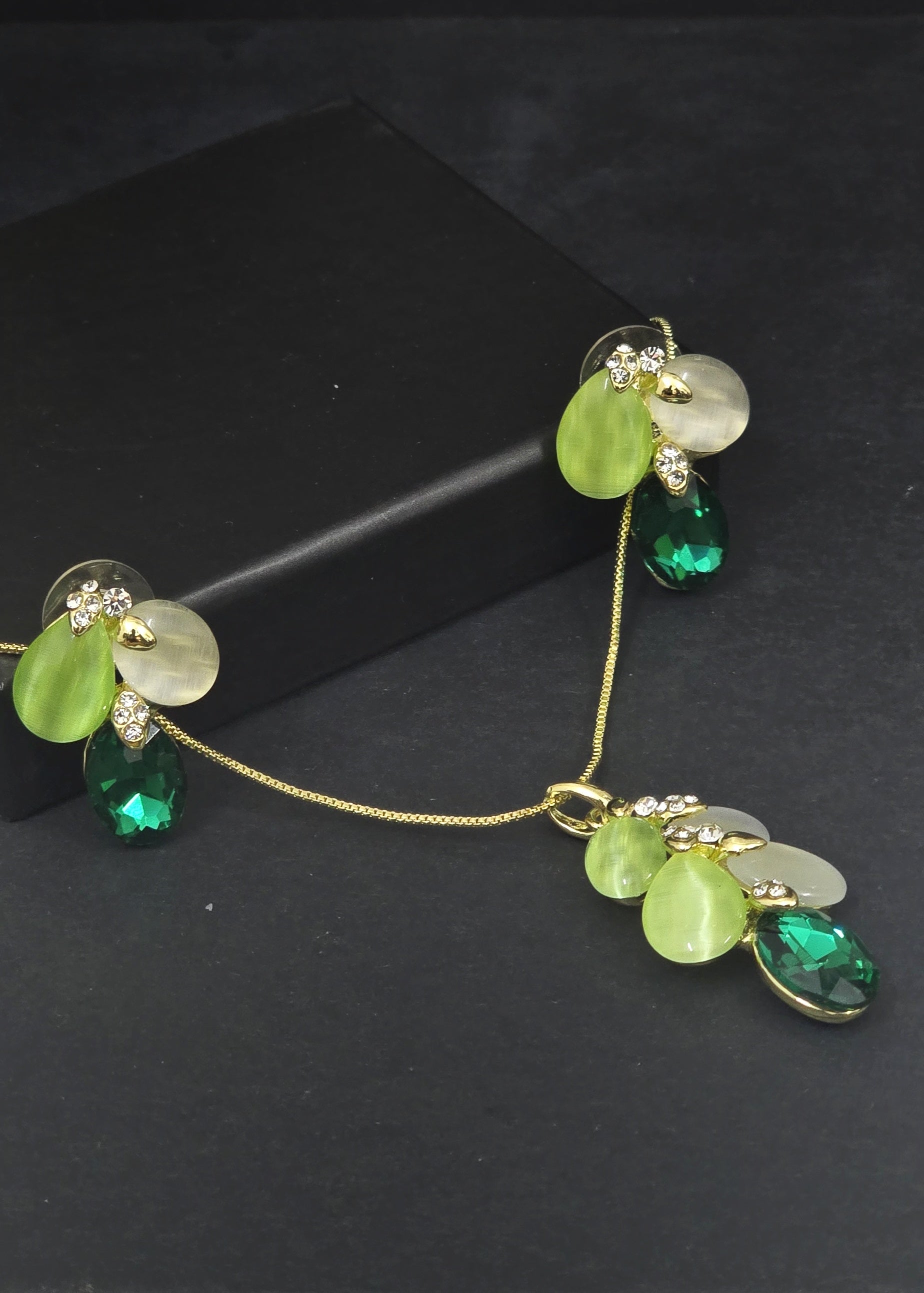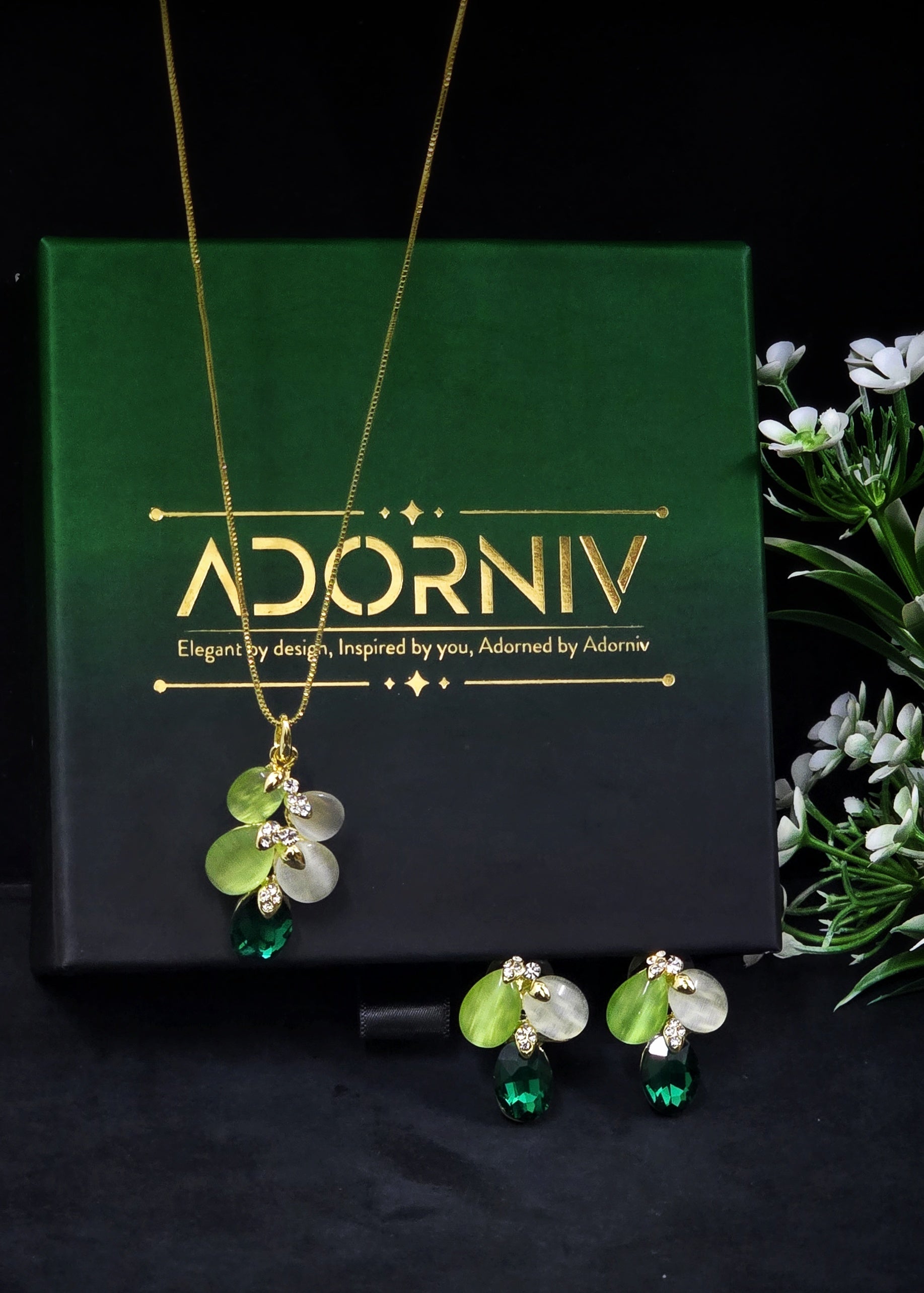 Add a touch of sophistication to your style with the Adorniv Emerald Grace Jewelry Set. This stunning set features a beautifully designed necklace and matching earrings, adorned with rich green stones, smooth white accents, and shimmering crystals. Its elegant design reflects timeless beauty, making it the perfect accessory to elevate both traditional and modern outfits.