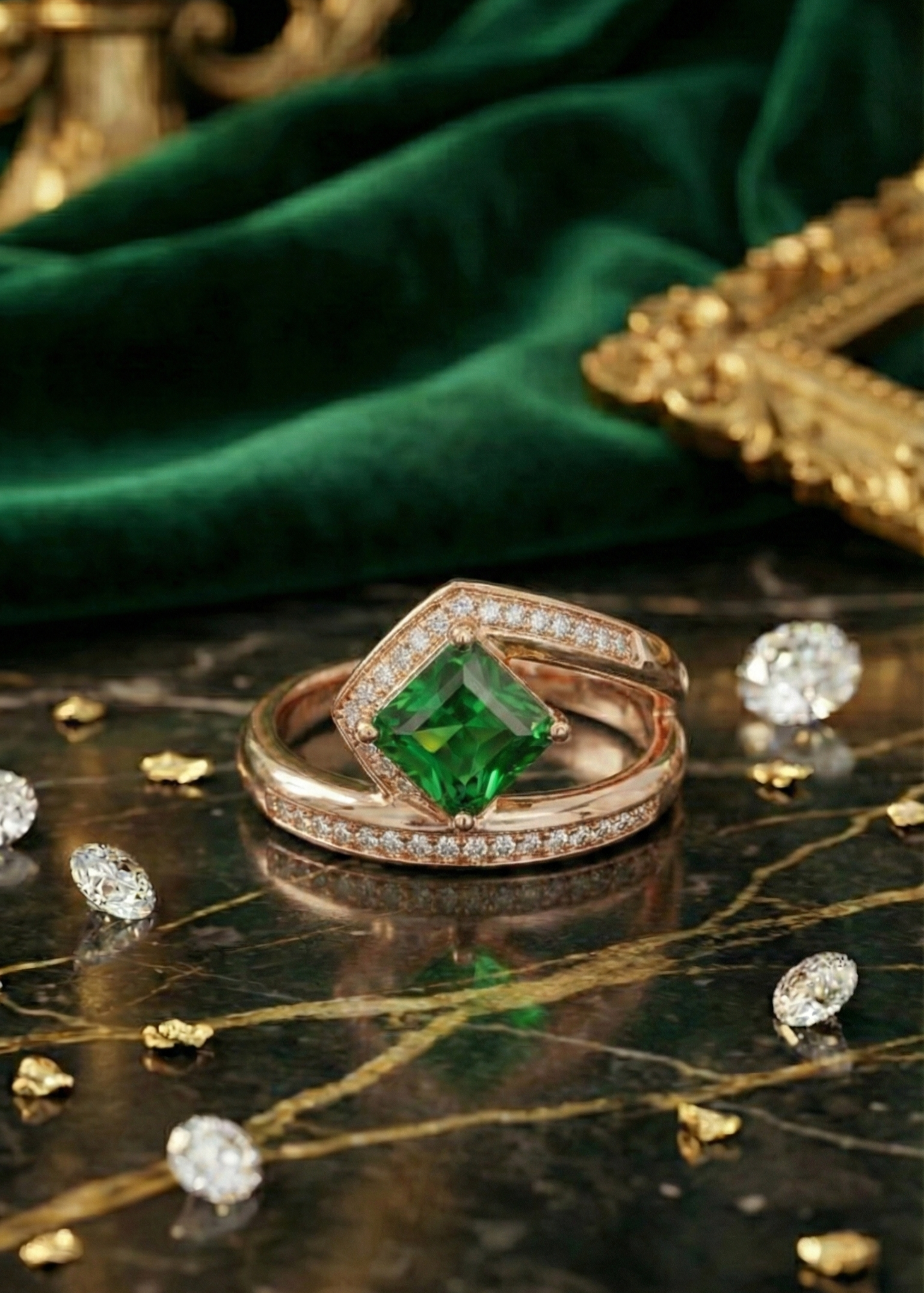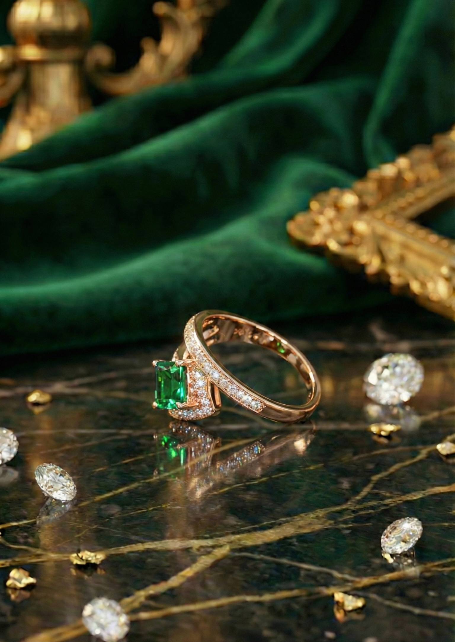 Pair this emerald ring with delicate gold bands to highlight its vibrant center stone, or style it as the focal piece with a minimal bracelet.