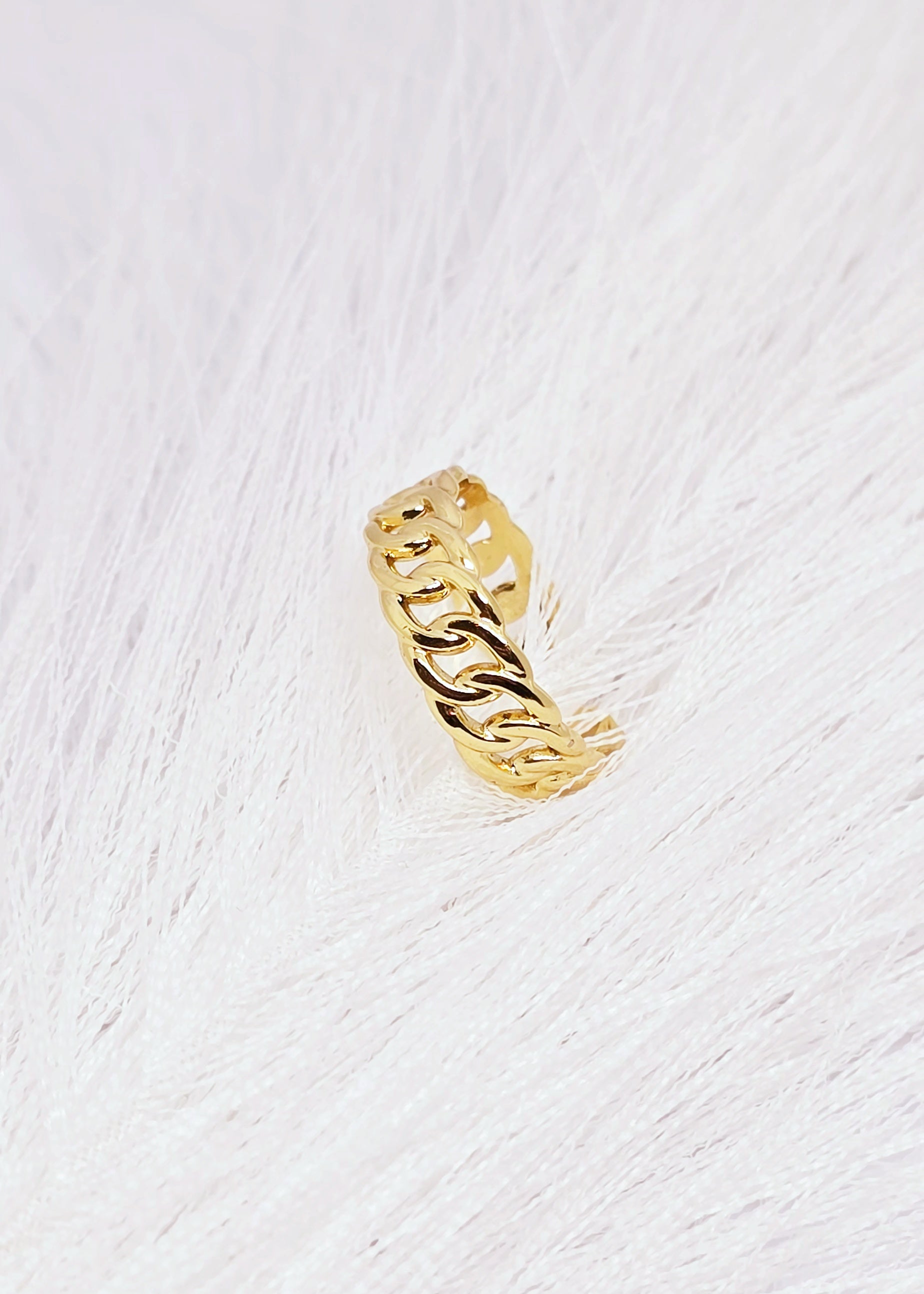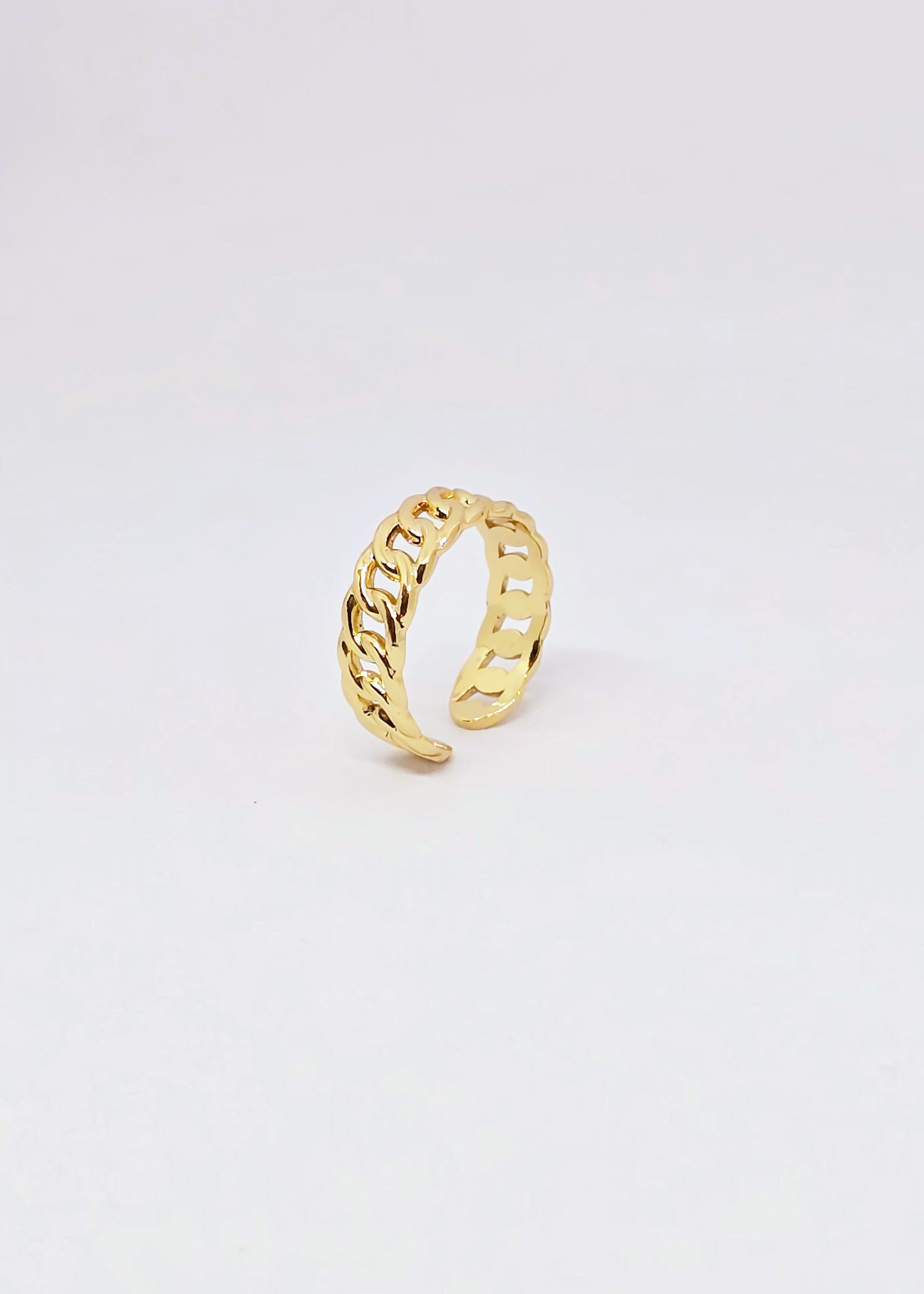 The Adorniv Golden Chain Luxe Ring combines contemporary fashion with timeless elegance. Inspired by the classic chain link design, this ring exudes strength and sophistication. Its open adjustable structure ensures a perfect fit, while the lustrous gold finish makes it a versatile accessory for everyday wear or special occasions. A must-have for those who love bold, modern jewelry.