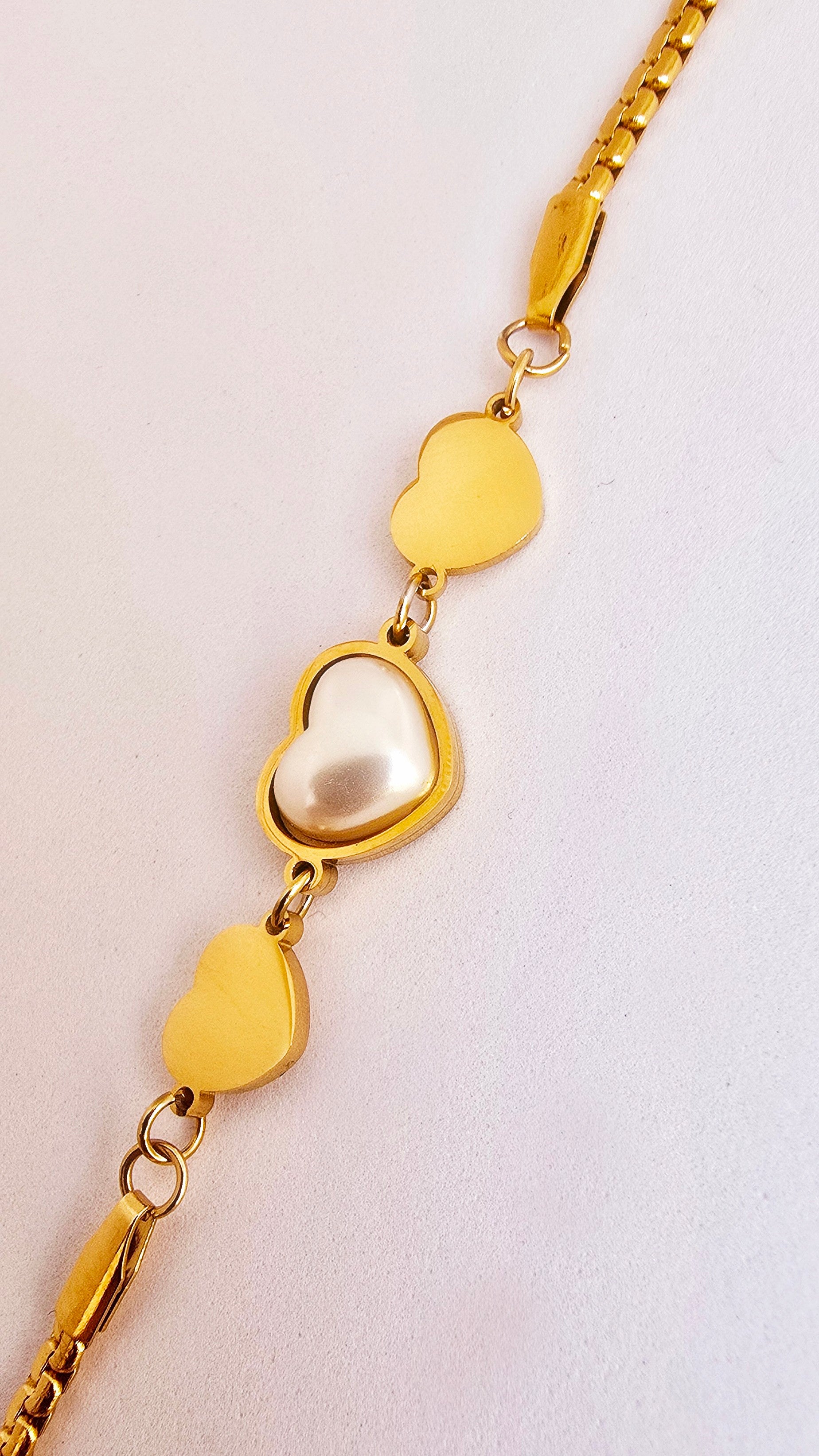Infuse your style with romance and elegance with the Adorniv Golden Heart Pearl Bracelet. This dainty bracelet features three sleek golden hearts and a pearl-accented heart centerpiece that symbolizes love and grace. Designed with premium plating, it’s tarnish-free, waterproof, sweatproof, and gentle on sensitive skin — ensuring a long-lasting shine and comfort every day.