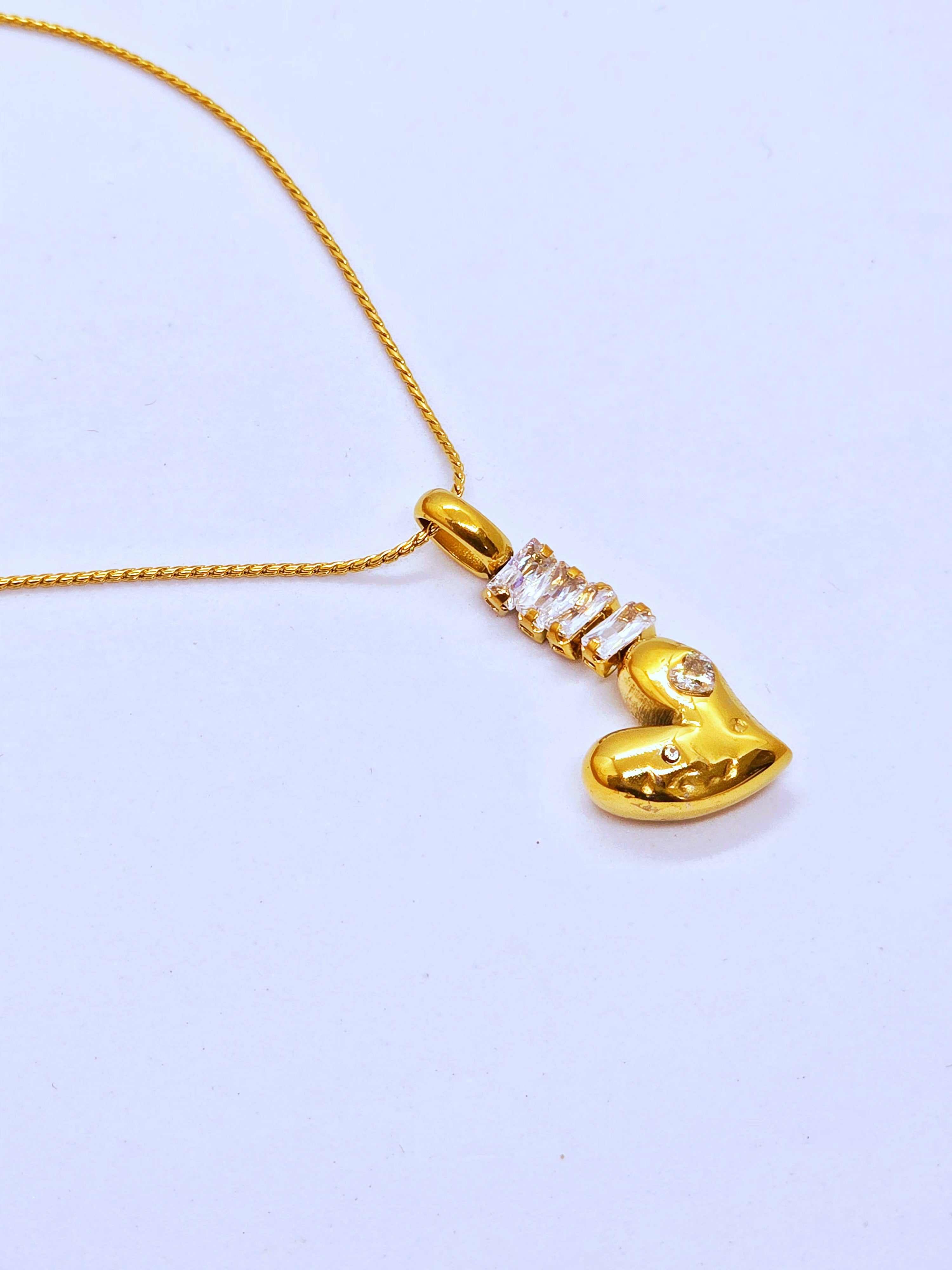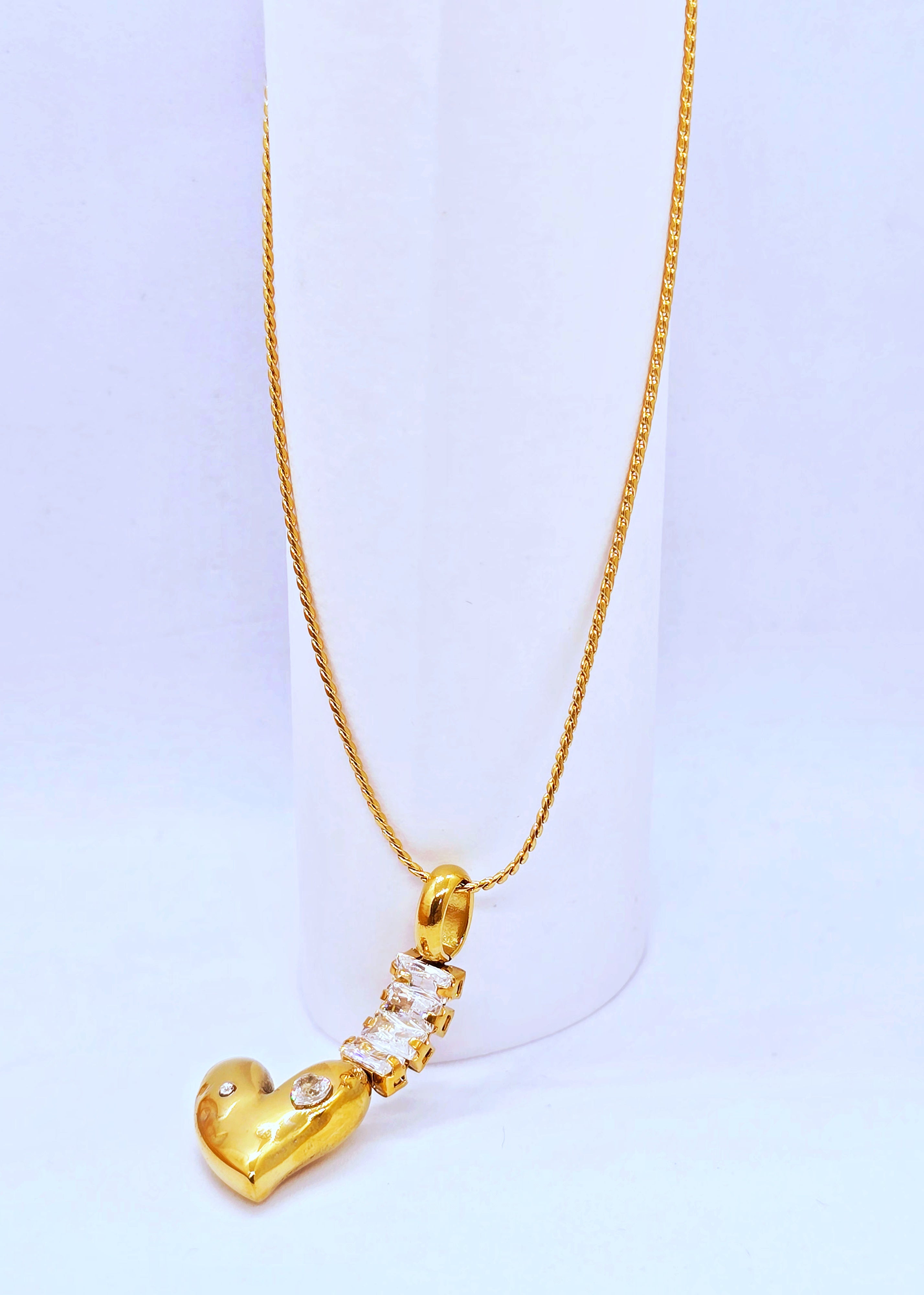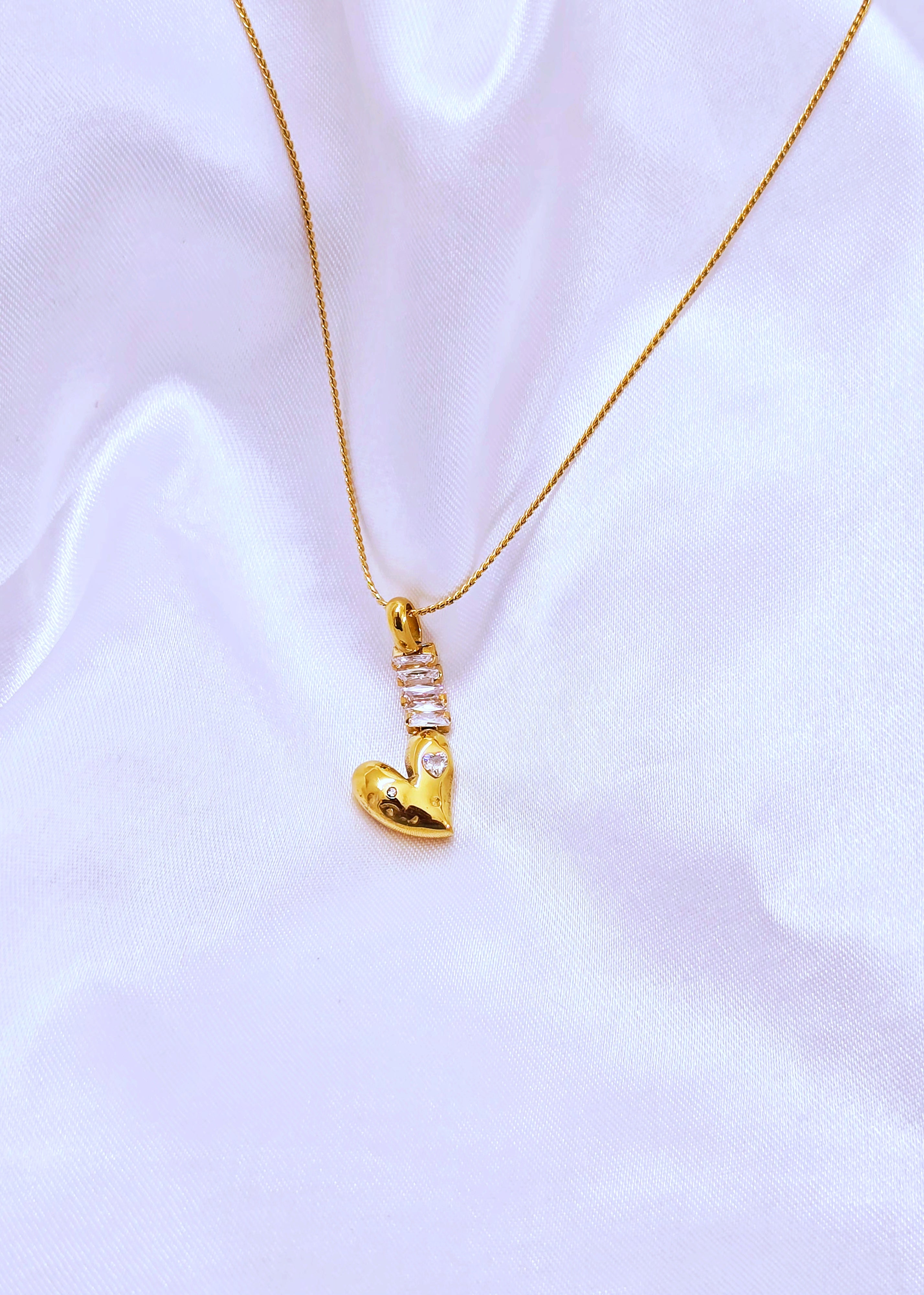 Elegant and full of charm, the Adorniv Golden Heartline Pendant Necklace is a dazzling piece crafted to capture the essence of love and grace. Featuring a lustrous heart-shaped pendant adorned with clear baguette-cut stones and petite round crystals, this necklace radiates warmth and style. The minimal gold-tone chain keeps the focus on the beautifully sculpted pendant, making it a standout accessory for special moments.