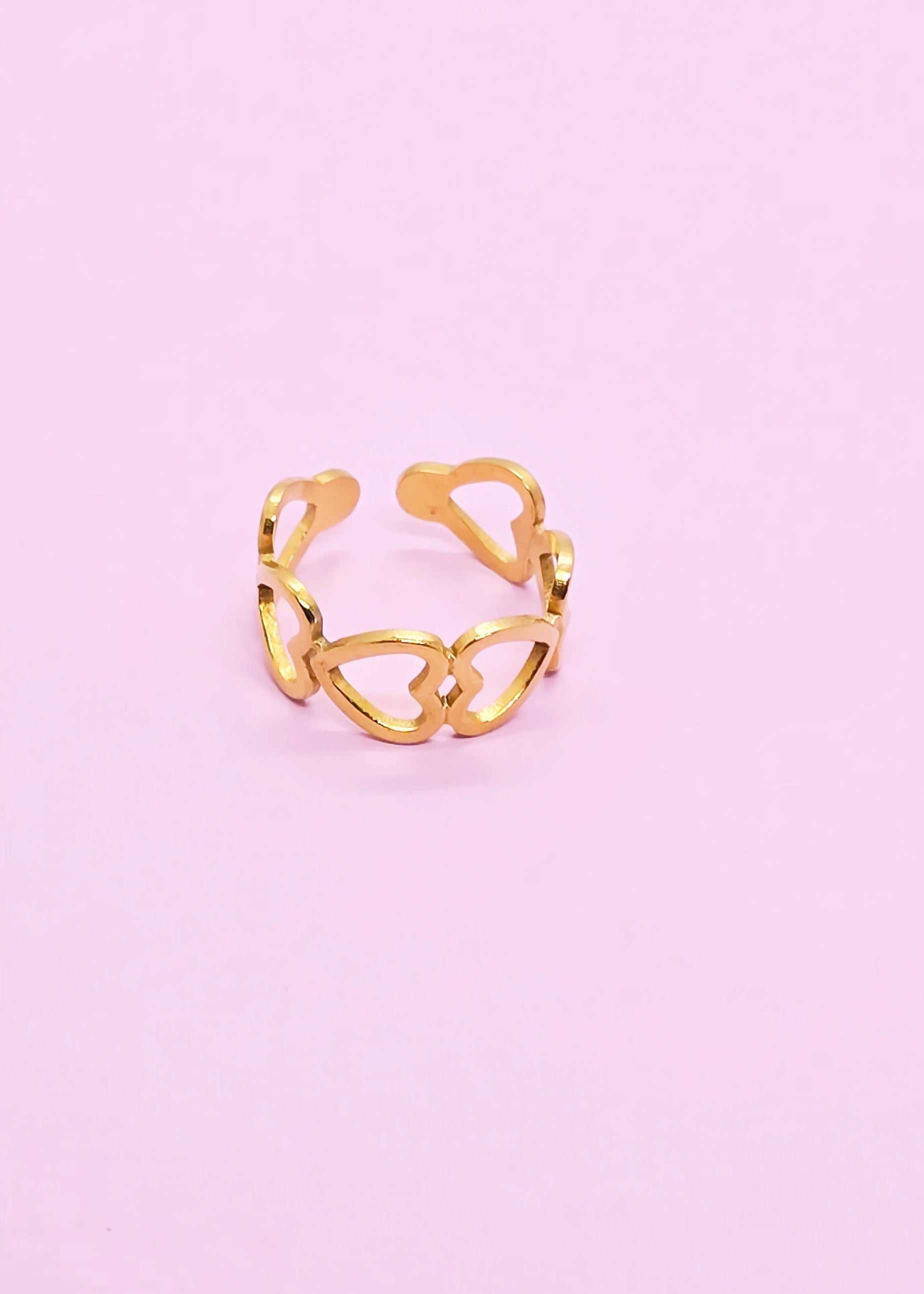 The Adorniv Golden Hearts of Love Ring is a delicate and romantic piece designed to symbolize love and connection. Featuring a series of openwork hearts, this adjustable ring is perfect for those who adore timeless elegance with a modern twist. Its high-shine golden finish adds a touch of sophistication, making it a must-have accessory for expressing love, whether it's for yourself or someone special.