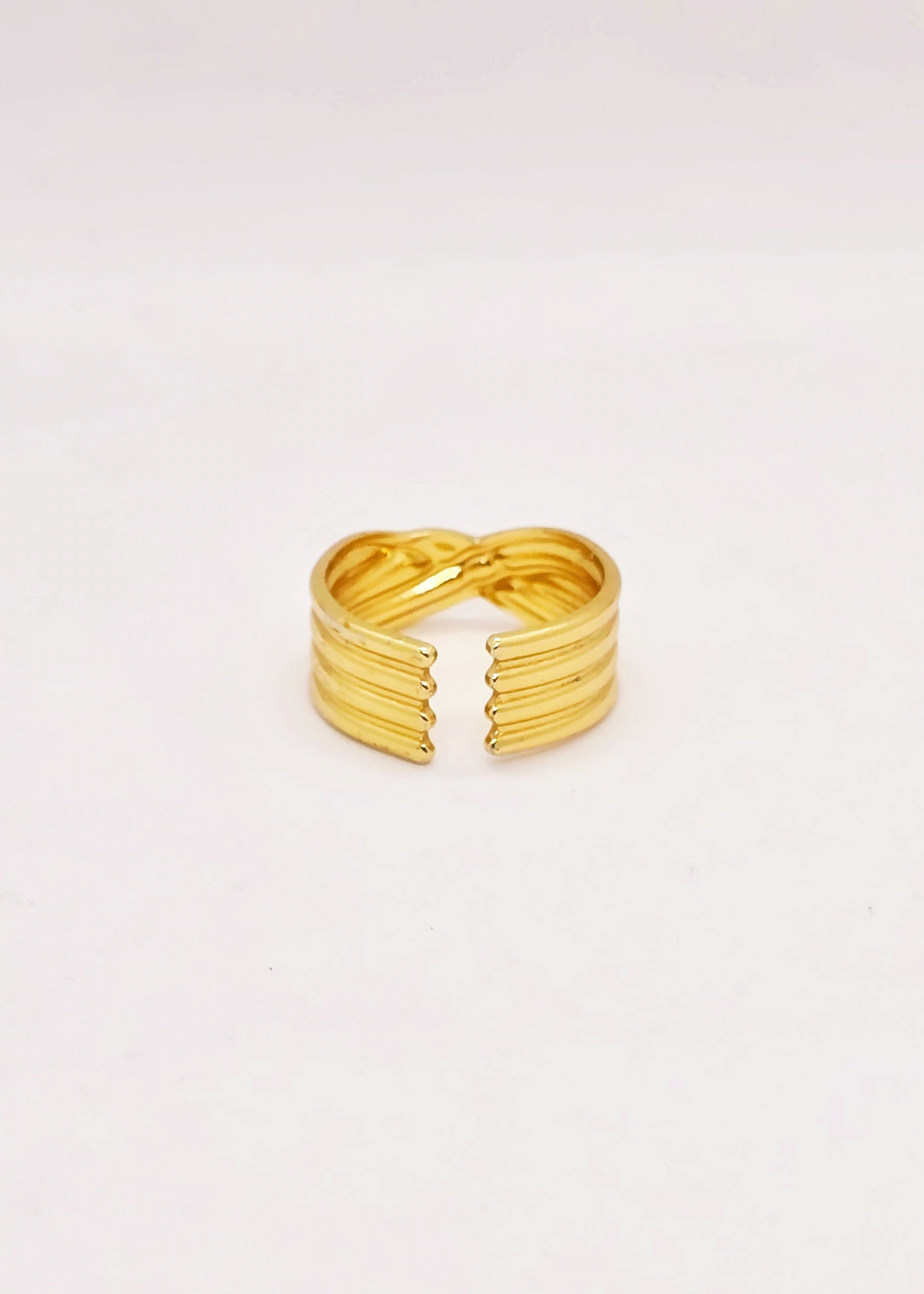 Embrace timeless sophistication with the Adorniv Golden Knot Elegance Ring. Featuring a stunning overlapping knot-inspired design, this ring symbolizes unity and strength while adding a touch of modern luxury to your style. Its polished gold finish gives it a bold yet graceful look, perfect for both casual and formal occasions. With its adjustable fit and durable craftsmanship, this ring is a versatile piece you'll treasure for years.