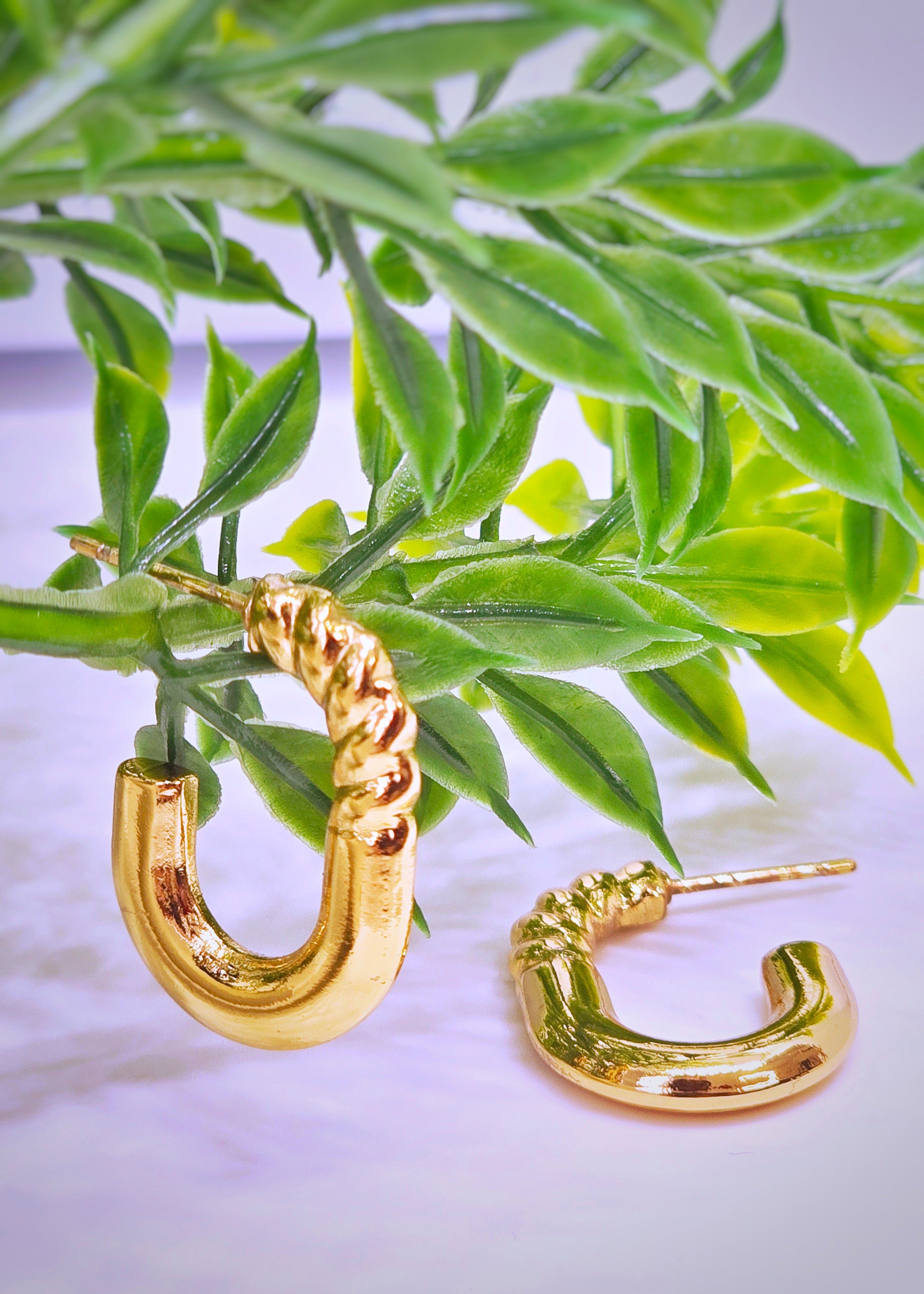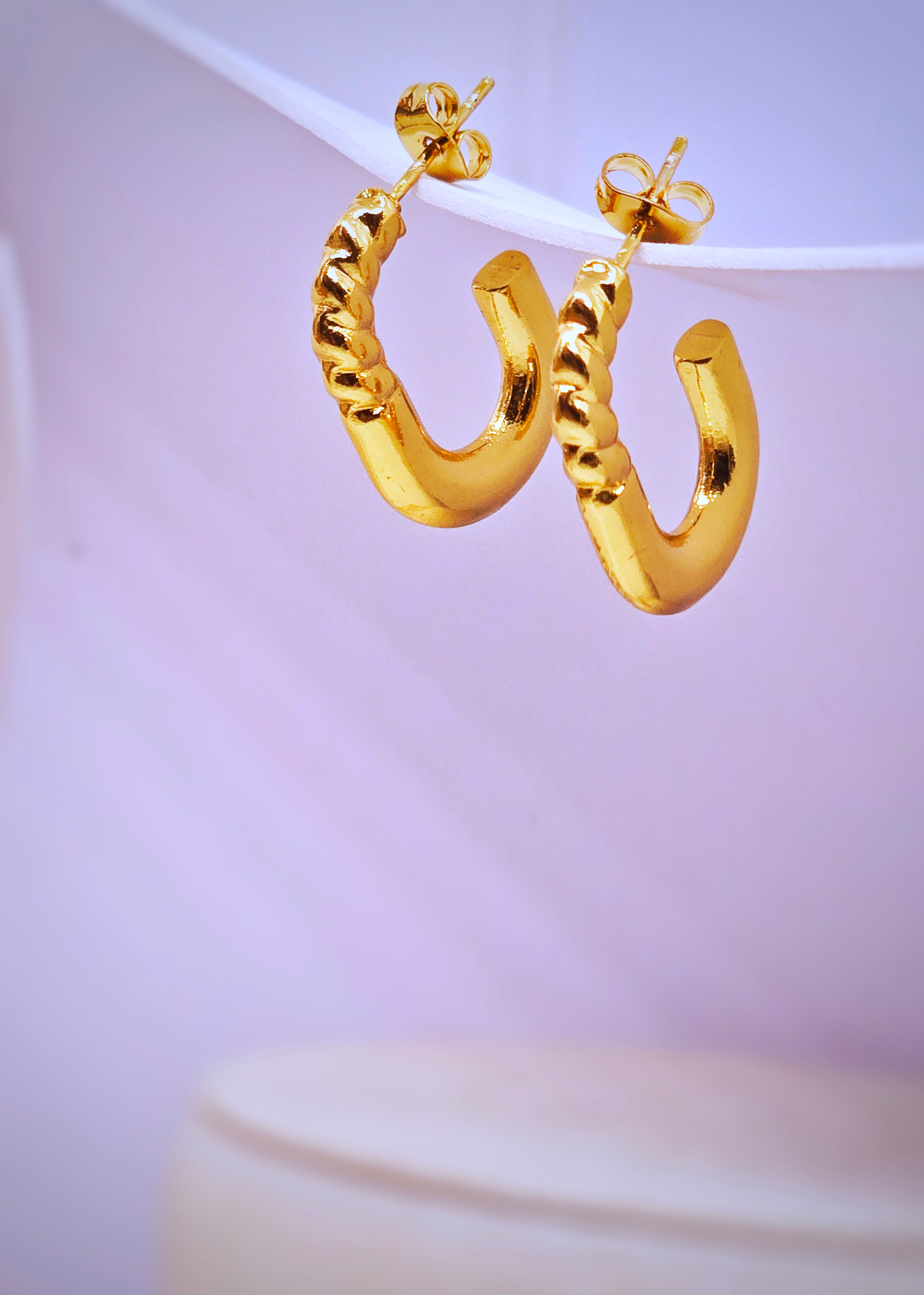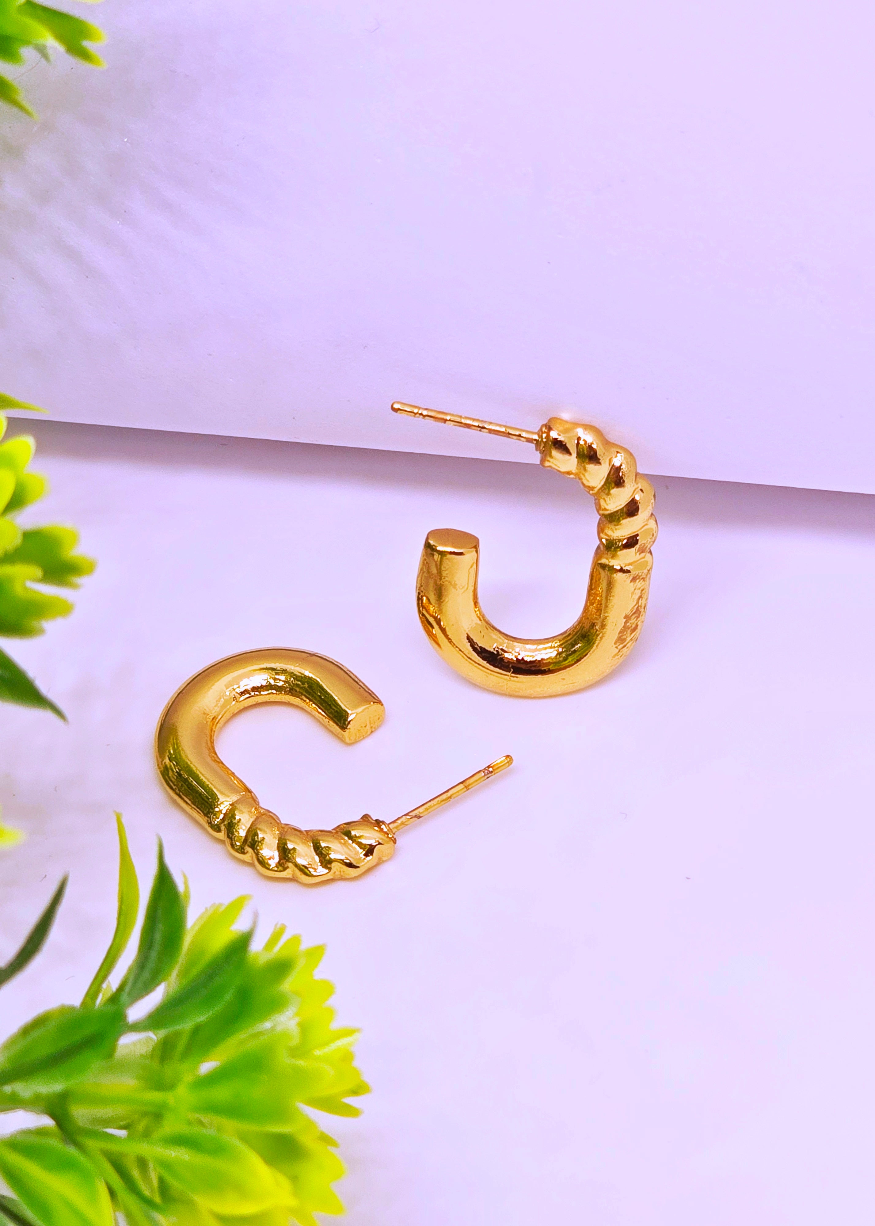 Sculptural yet wearable, the Adorniv Golden Molten Half-Hoop Earrings feature a bold U-shaped design with textured accents near the post. Inspired by molten metal forms, they bring a touch of raw elegance to your look. These chunky half-hoops are lightweight yet statement-making—perfect for those who love modern design with a twist.