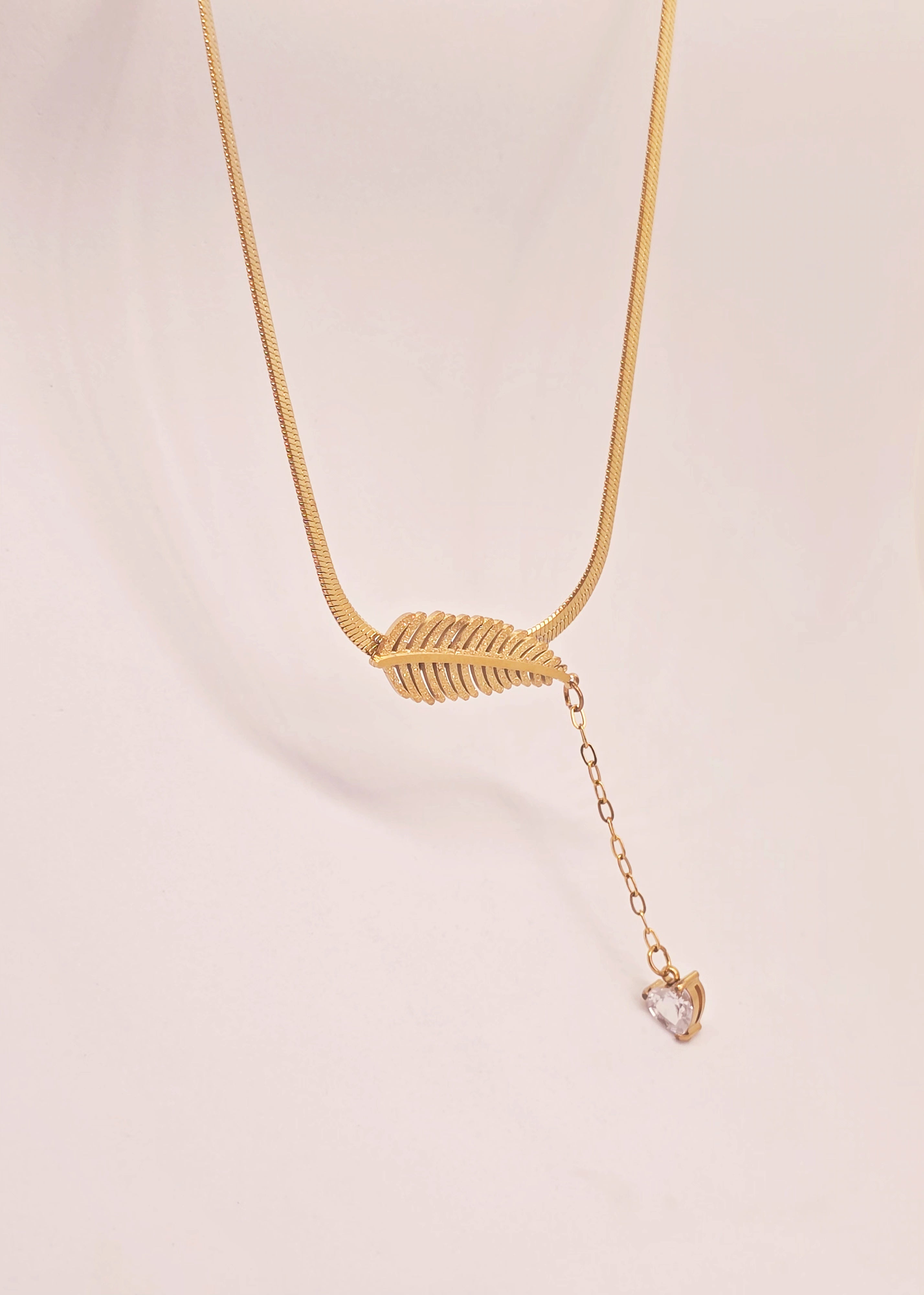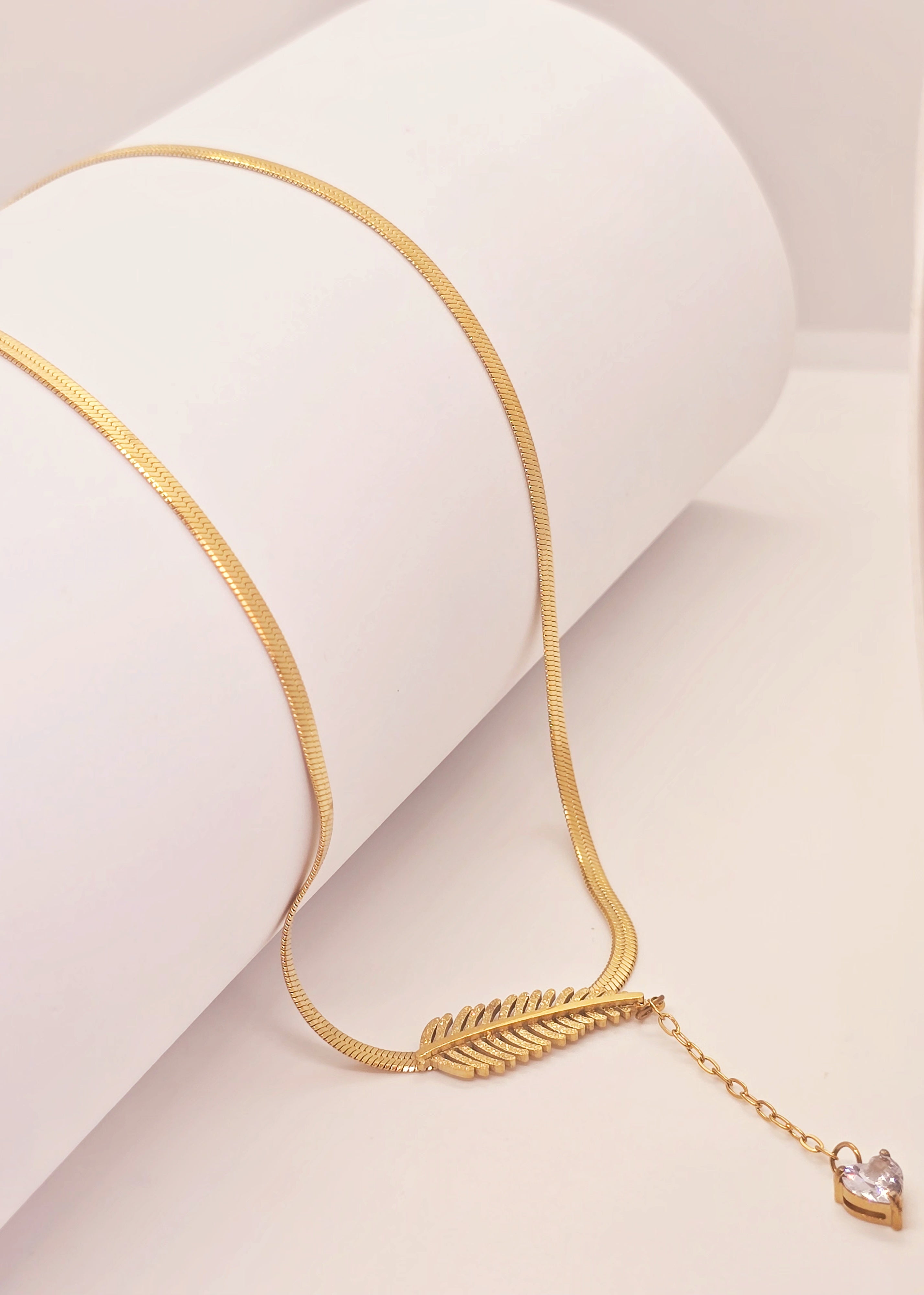 Add a whisper of nature and romance to your look with the Adorniv Heartleaf Gold Necklace. Featuring a sleek snake chain design, this necklace highlights a detailed leaf motif paired with a dainty dangling heart-shaped crystal. Subtle yet stunning, it’s the perfect everyday luxury.