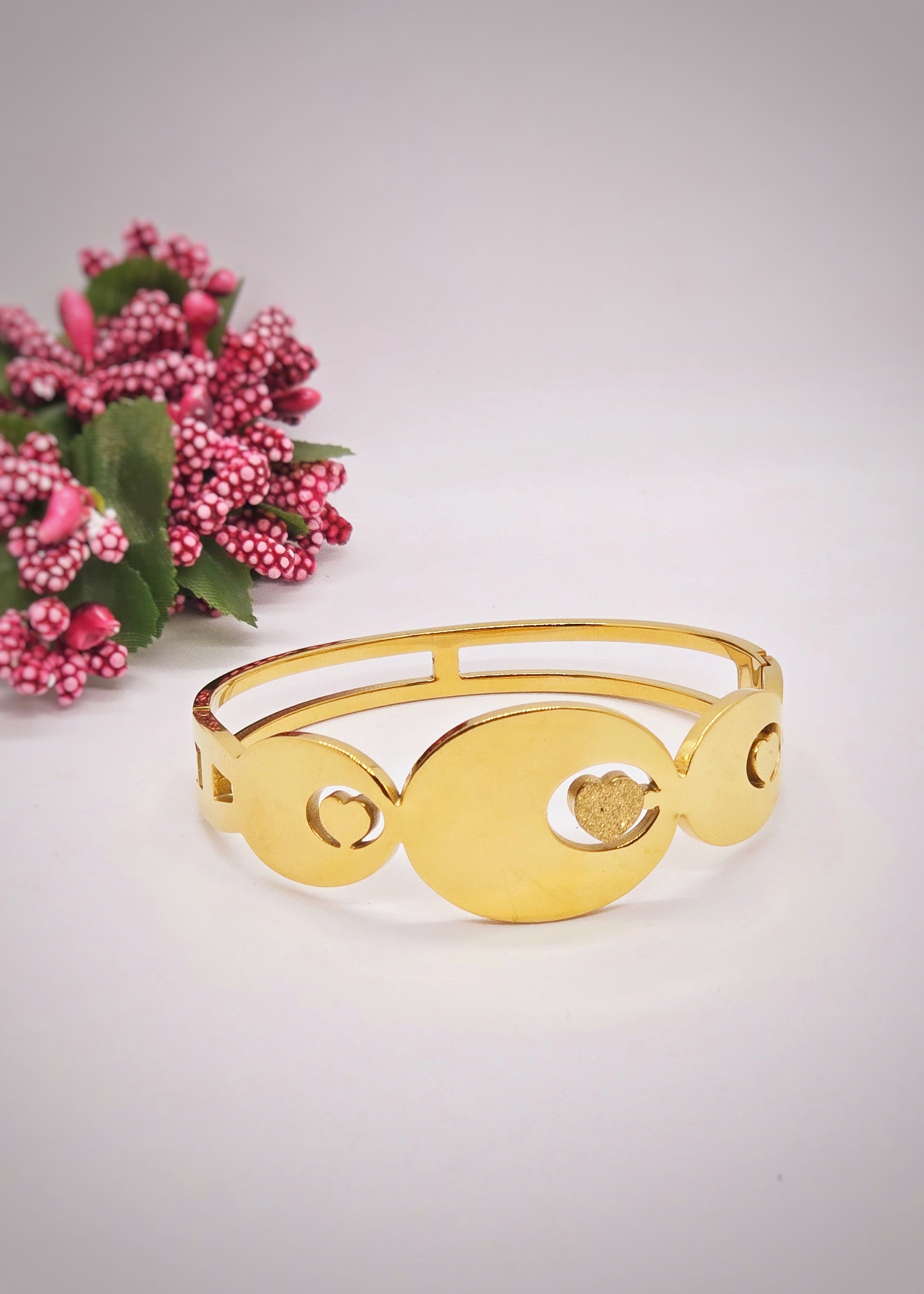 Celebrate love and timeless beauty with the Adorniv Love Embrace Bracelet. Designed with graceful circular motifs holding delicate heart cut-outs, this bracelet symbolizes affection and elegance. Its refined design adds a romantic charm to any look, making it perfect for both everyday wear and special occasions.