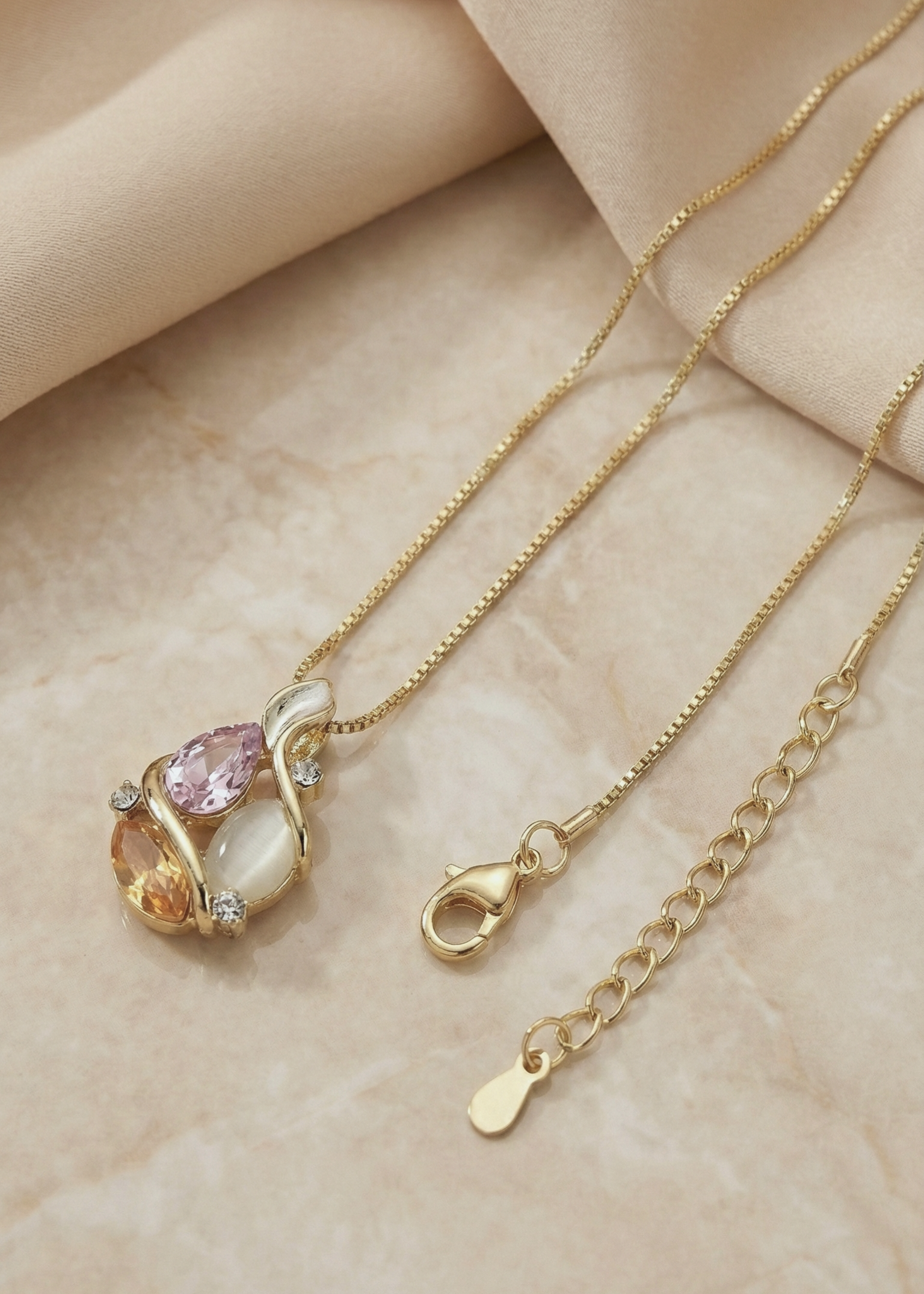 Elevate your jewelry collection with the Adorniv Radiance Luxe Necklace & Earrings Set, a premium creation designed to exude class and sophistication. Crafted with precision, this stunning set features a luxurious gold base adorned with elegant crystals and gemstones in soft pink, warm amber, and pearly accents.