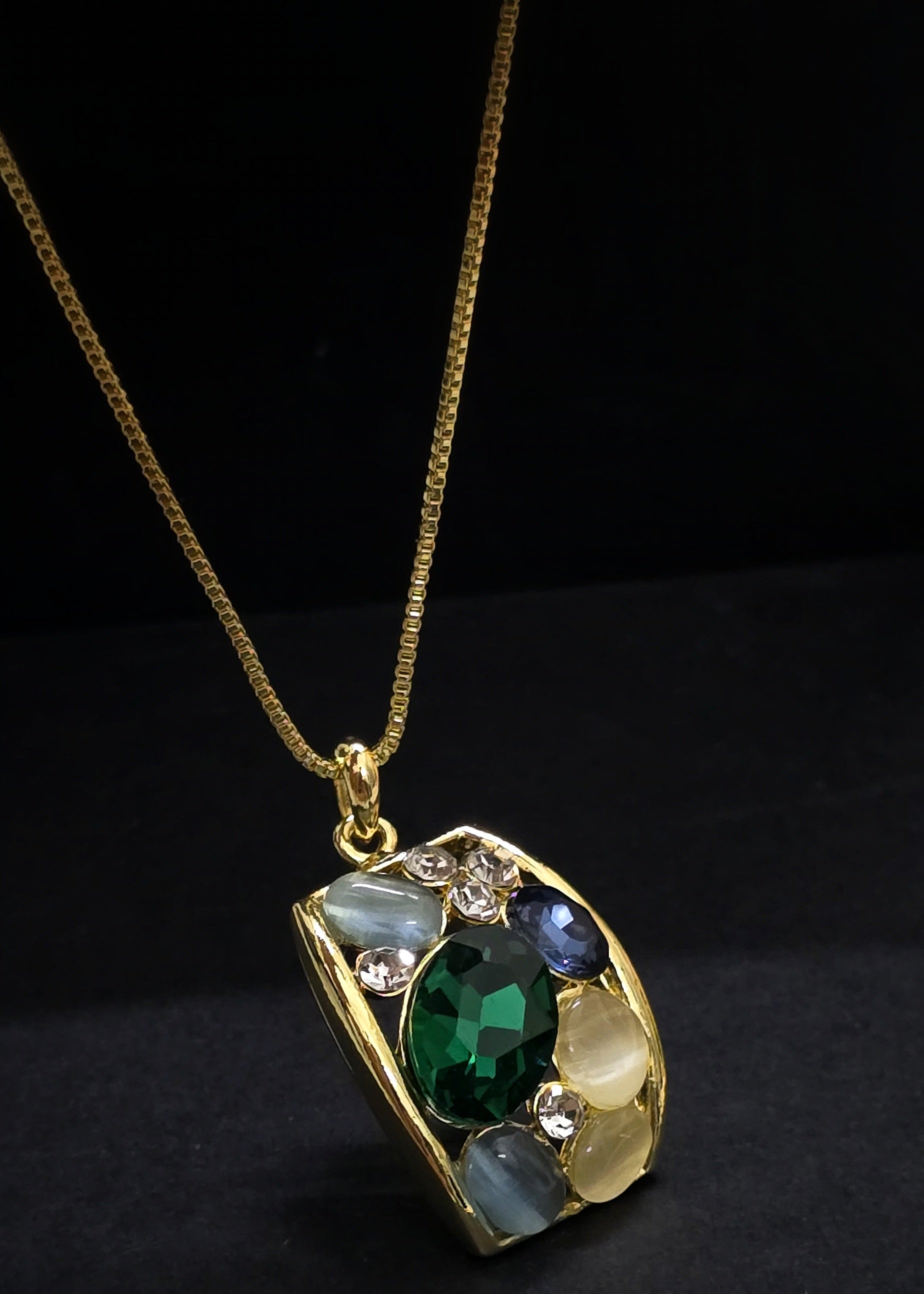 • Vibrant Gemstones: Features a blend of rich hues like emerald green, sapphire blue, and crystal white.