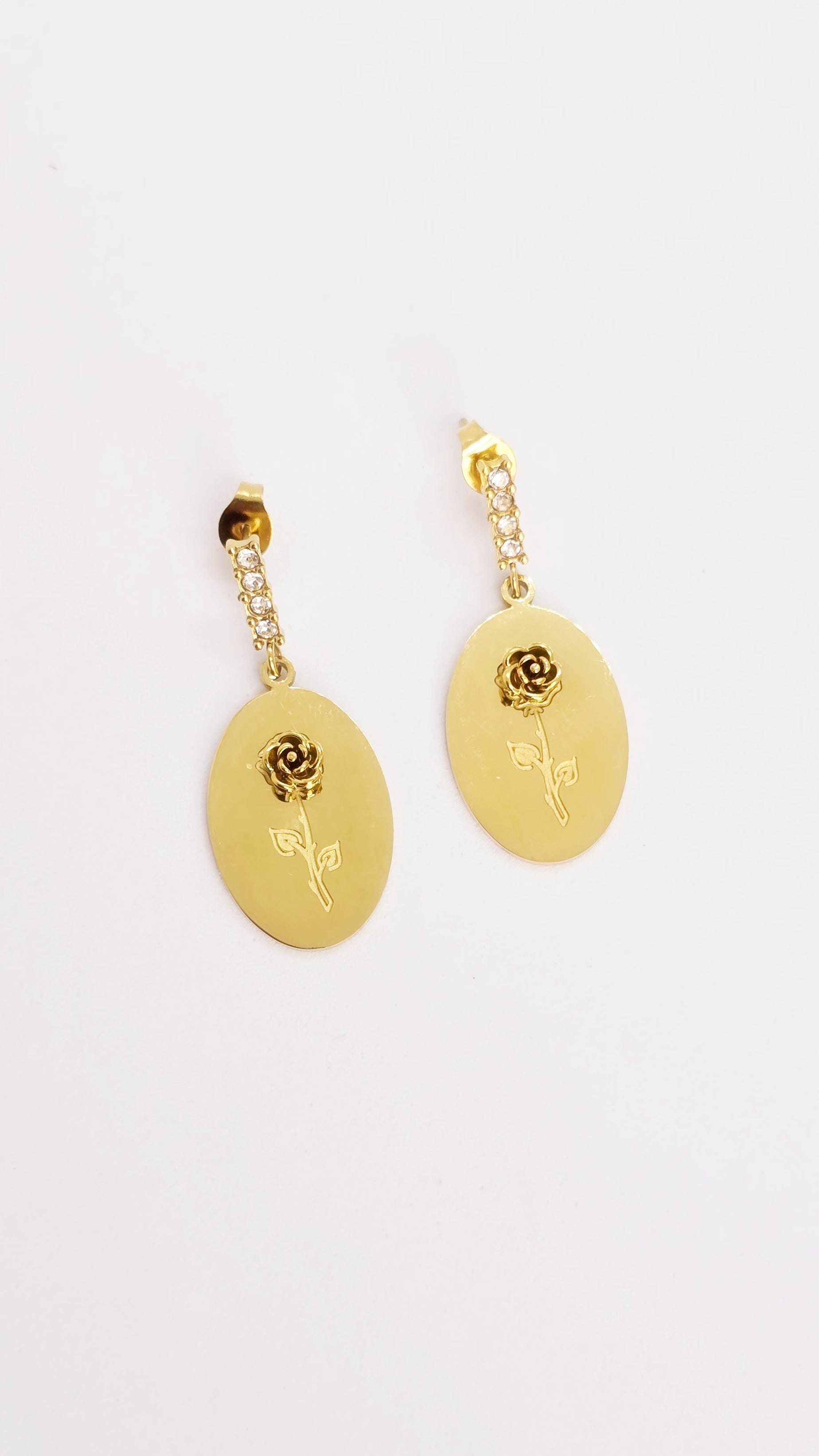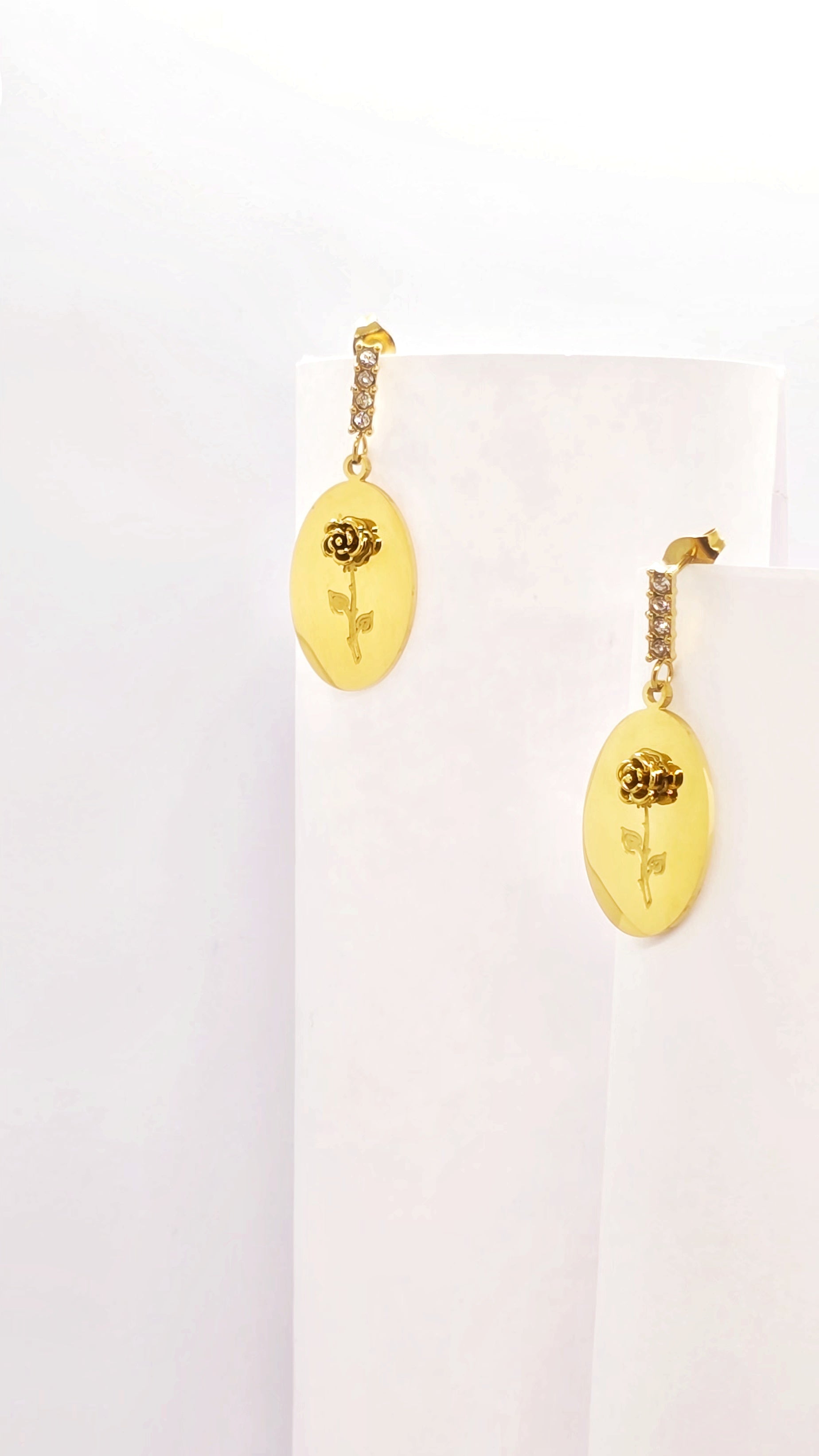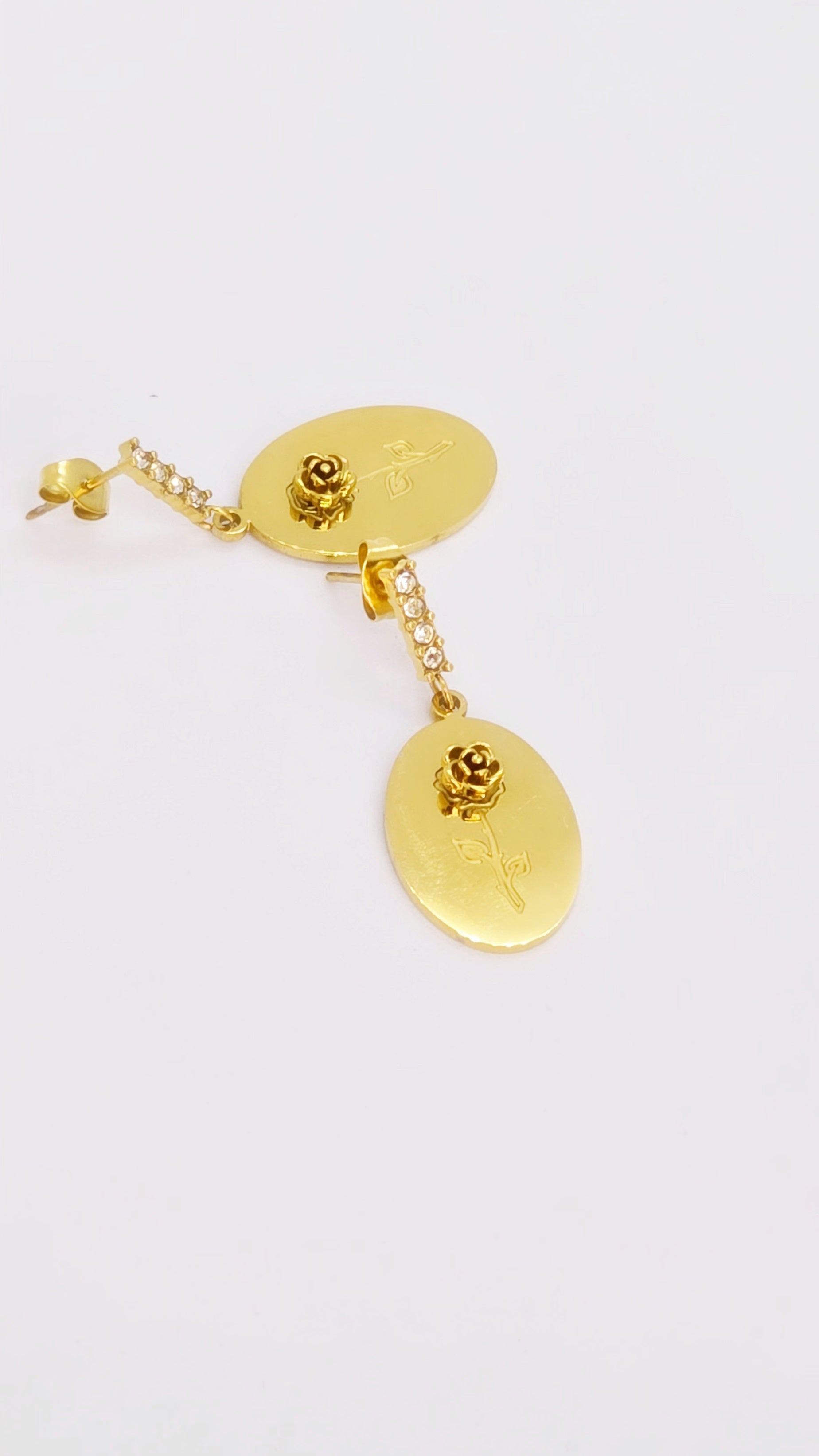 Elevate your ensemble with the timeless charm of these rose emblem earrings. Pair them with an off-shoulder silk gown or a crisp tailored suit for a look that whispers quiet luxury. Sweep your hair into a sleek bun or soft waves to draw attention to the delicate floral detail — perfect for soirées, candlelit dinners, or an intimate celebration of style.