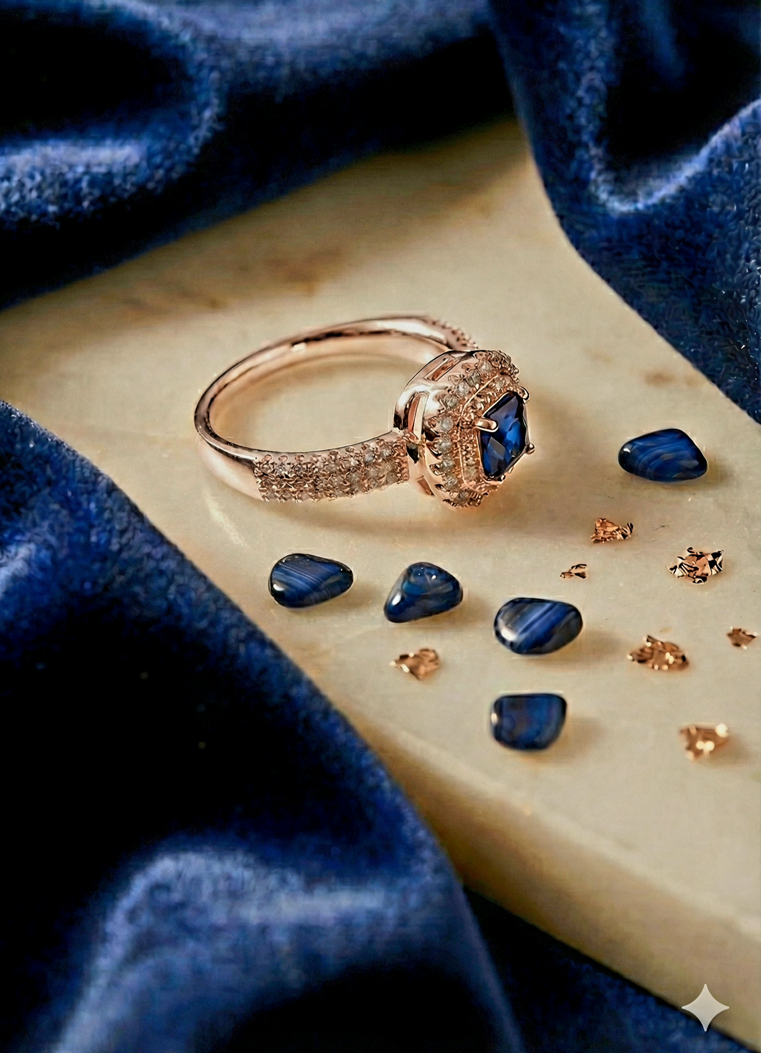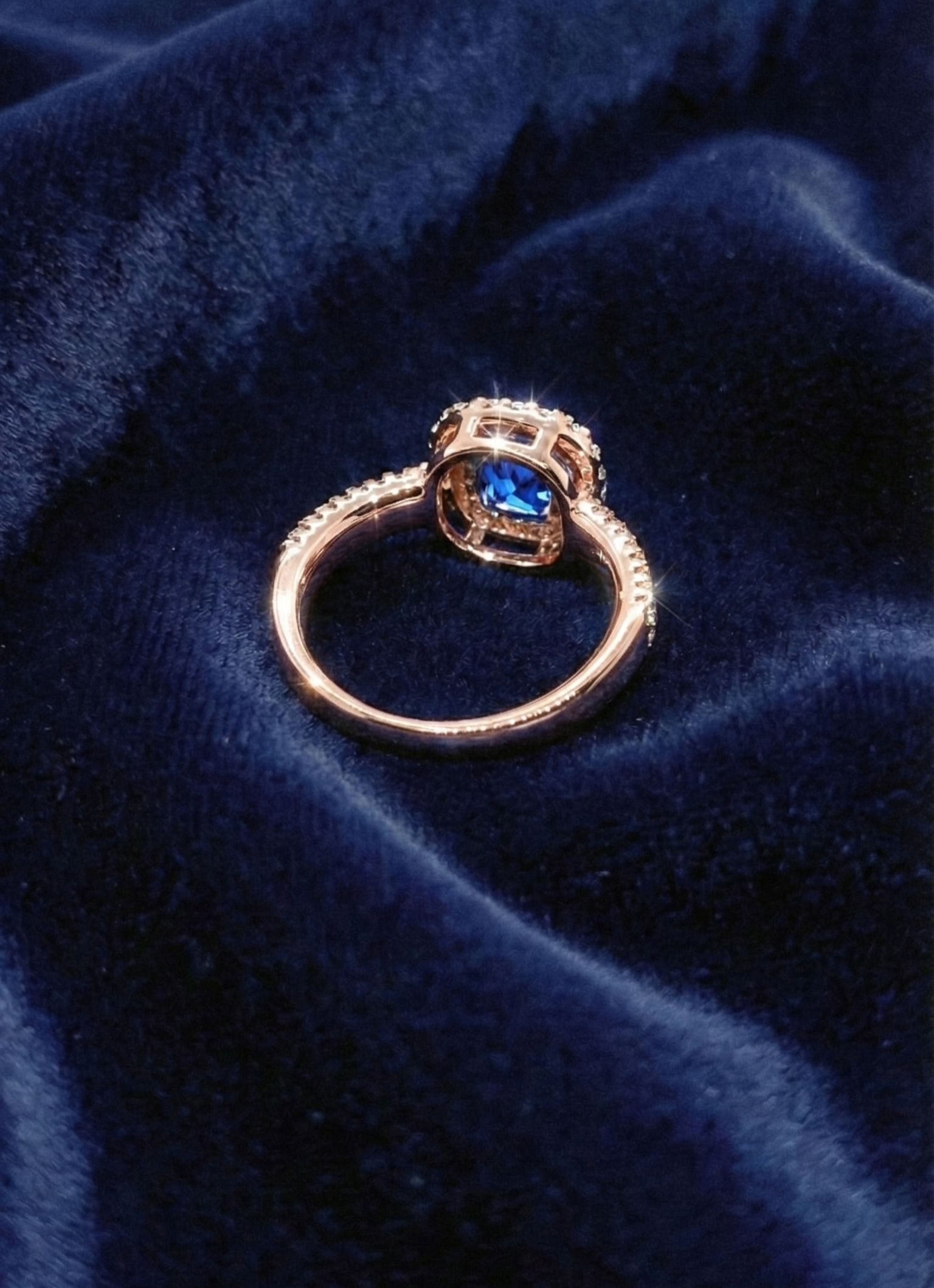 • Rose gold tone premium finish with sapphire-inspired accent