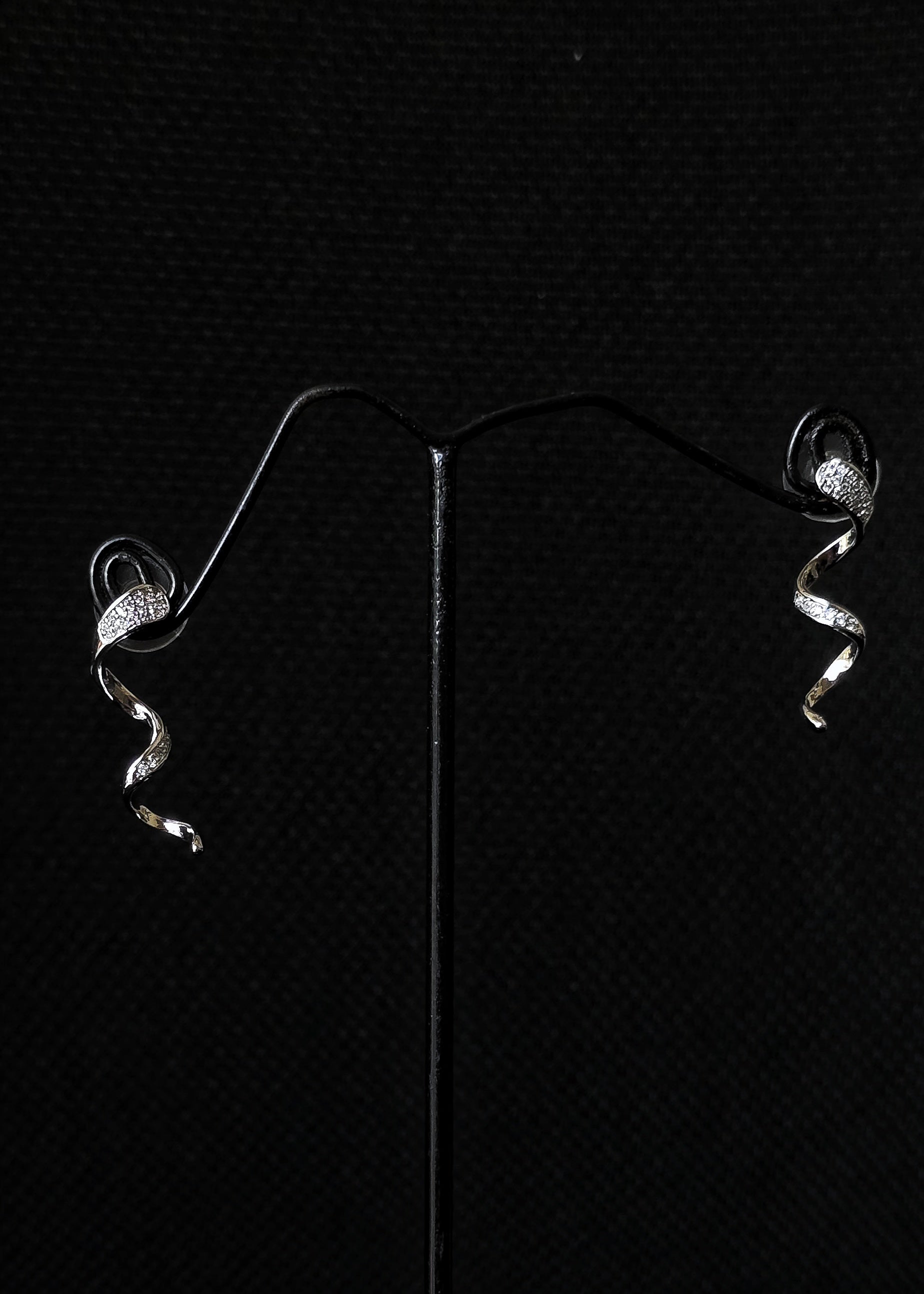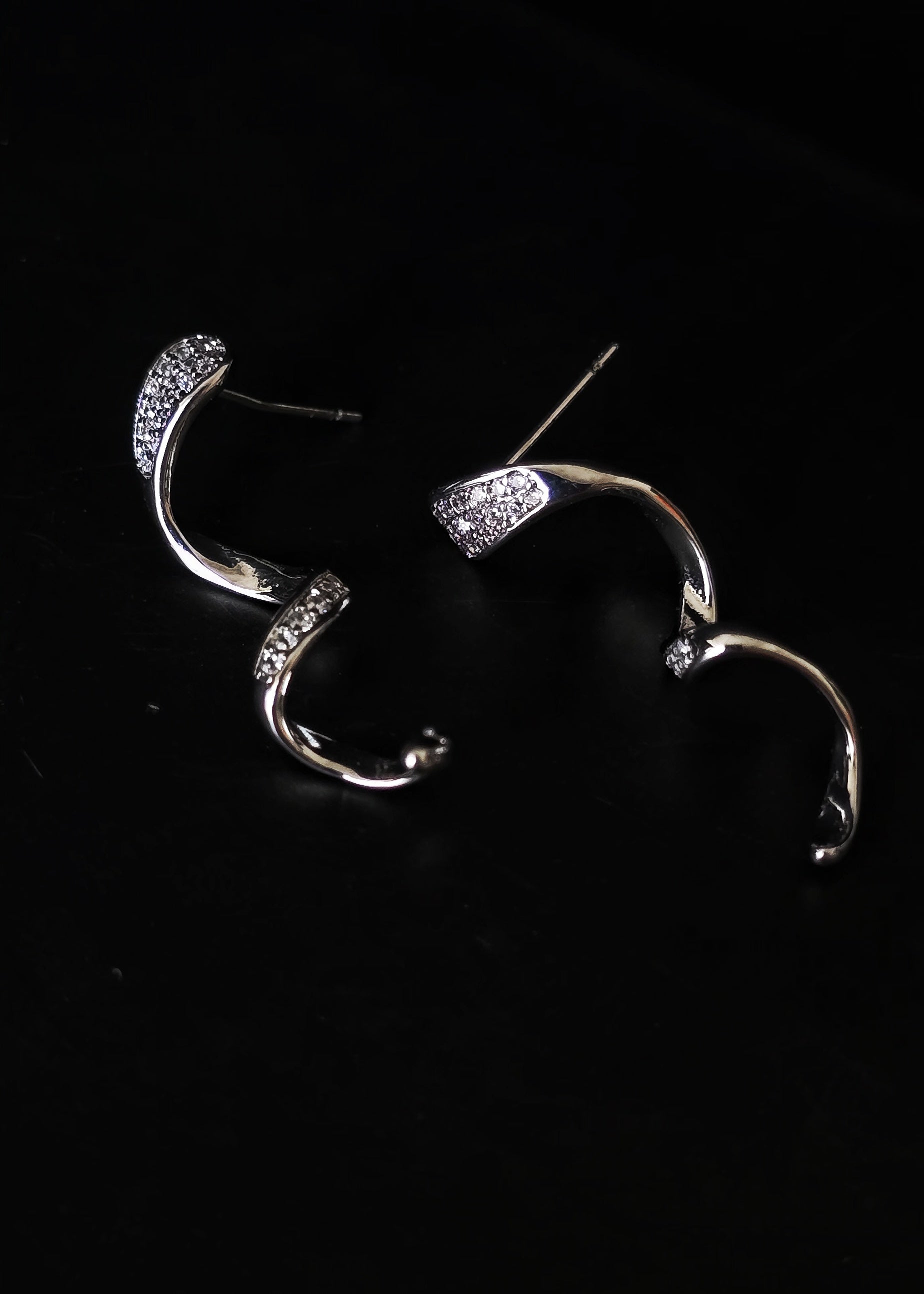 Dare to be different with these modern silver spiral earrings that exude minimalism with a hint of sparkle. The sleek, wave-like design is adorned with fine cubic zirconia crystals, creating a sophisticated statement without being too loud.